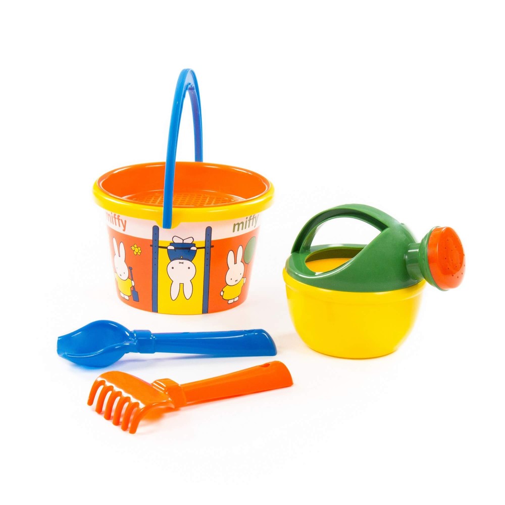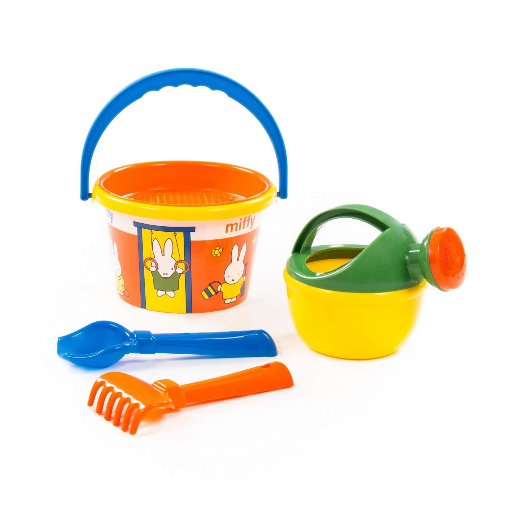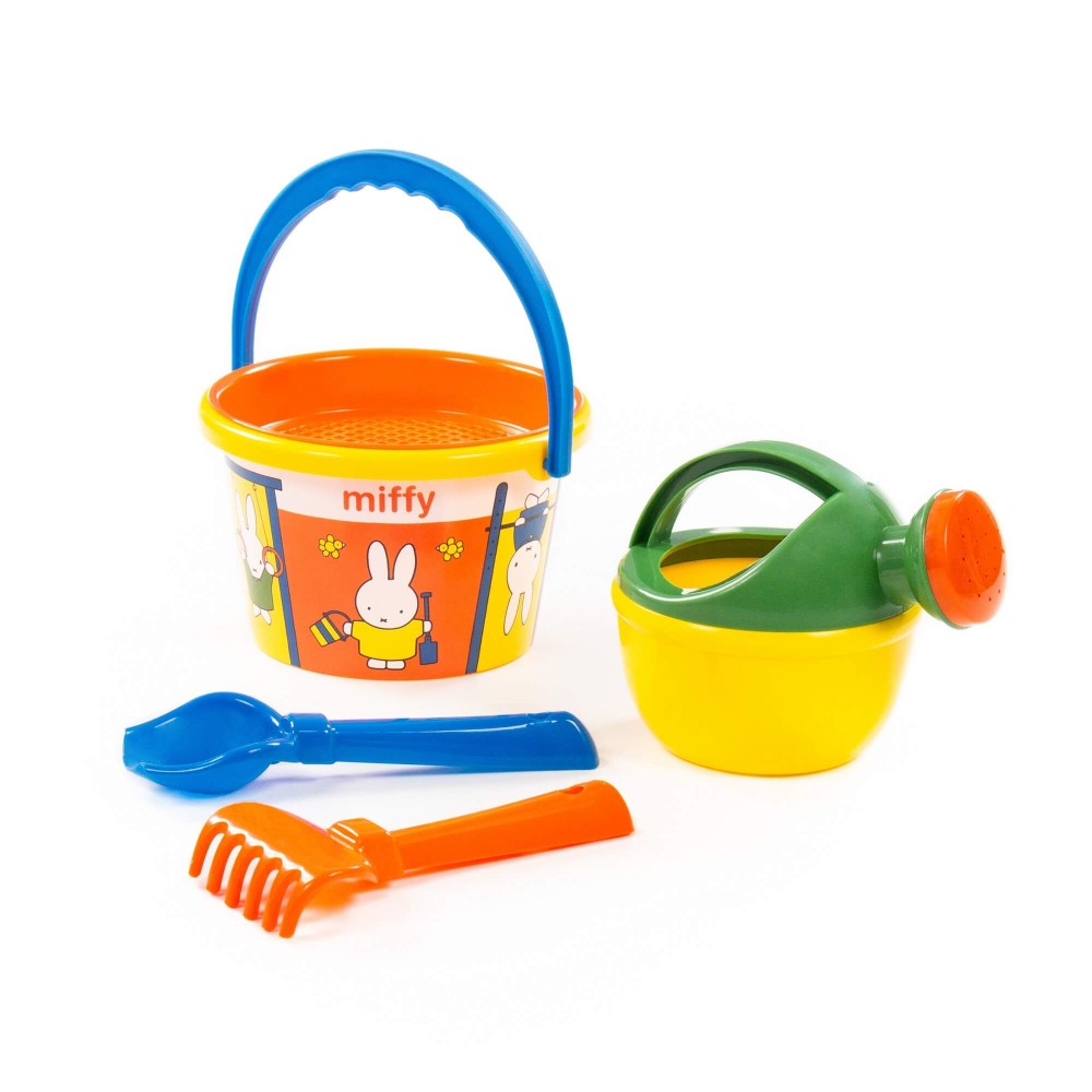 Компания «Полесье» разработала серию игрушек «Миффи». Маленькая девочка-кролик украшает летние наборы. Все элементы выполнены в цветах известного на весь мир мультфильма про Миффи, история которого началась в Голландии. Летний комплект данной серии разнообразит игру малыша в песочнице или на пляже. Наклейка нанесена современным способом — по технологии IML. Благодаря этому рисунок на игрушке не стирается длительное время и не боится воды. В набор входят: ведро среднее с наклейкой, ситечко, совок, грабельки, лейка малая.