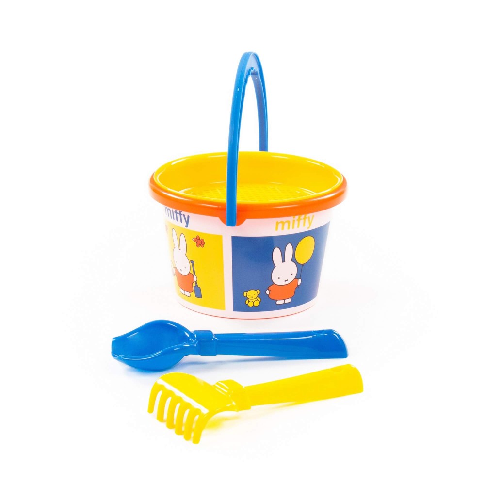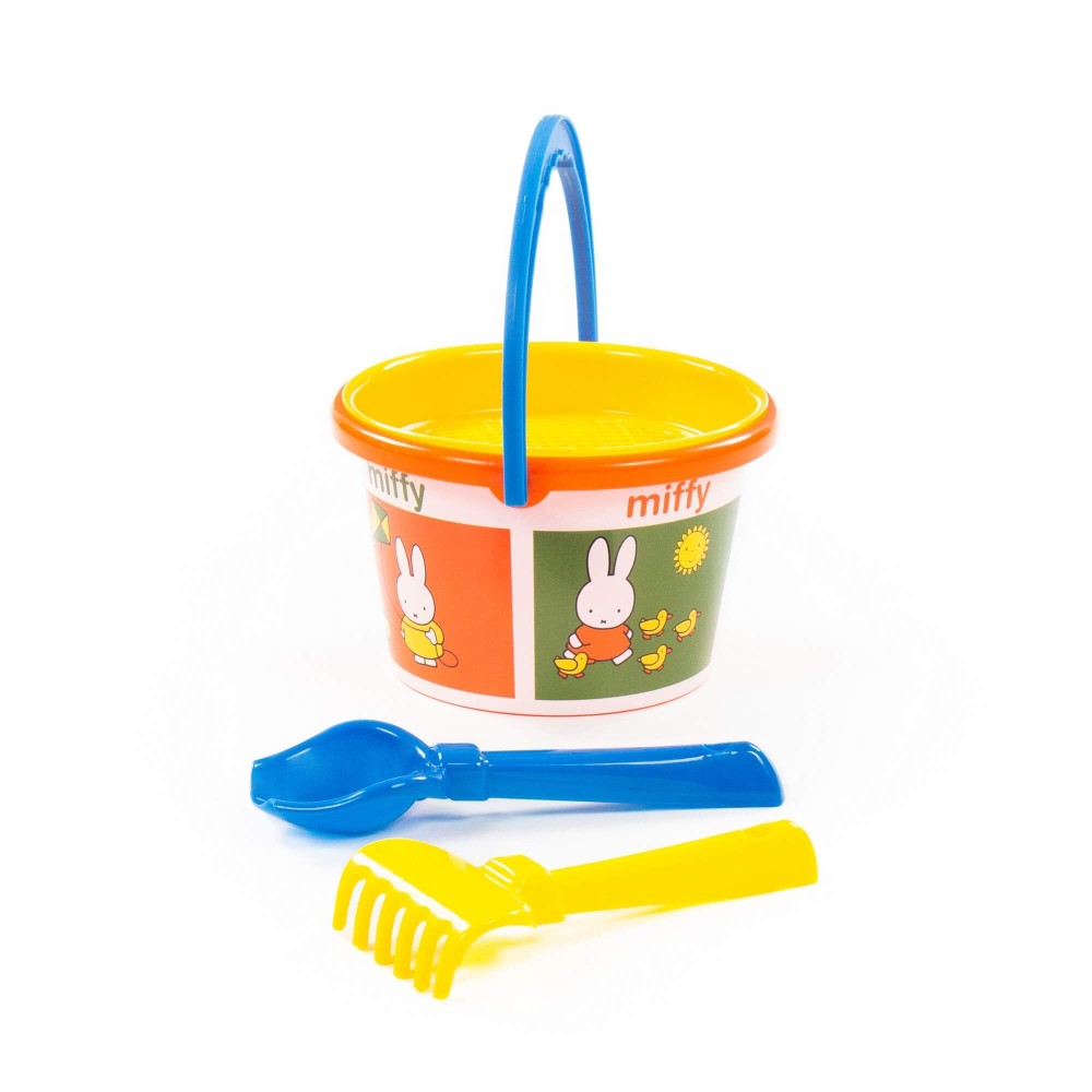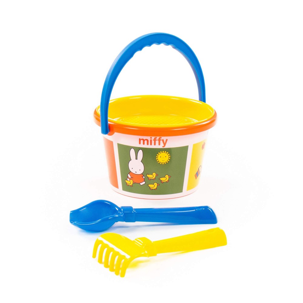 Компания «Полесье» разработала серию игрушек «Миффи». Маленькая девочка-кролик украшает летние наборы. Все элементы выполнены в цветах известного на весь мир мультфильма про Миффи, история которого началась в Голландии. Летний комплект данной серии разнообразит игру малыша в песочнице или на пляже. Наклейка нанесена современным способом – по технологии IML. Благодаря этому рисунок на игрушке не стирается длительное время и не боится воды. В набор входят: ведро среднее с наклейкой, ситечко, совок и грабельки.