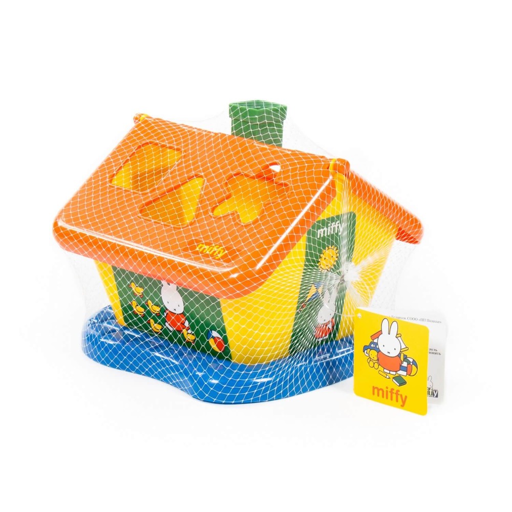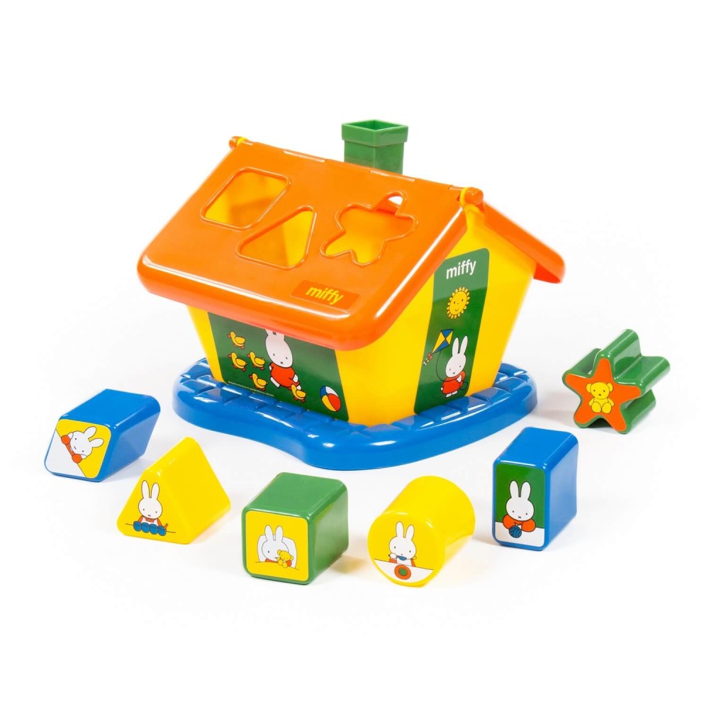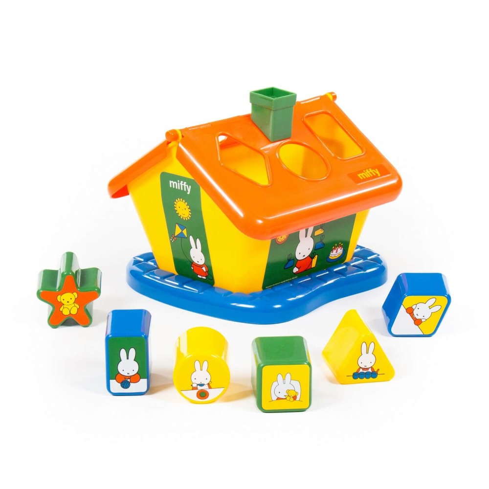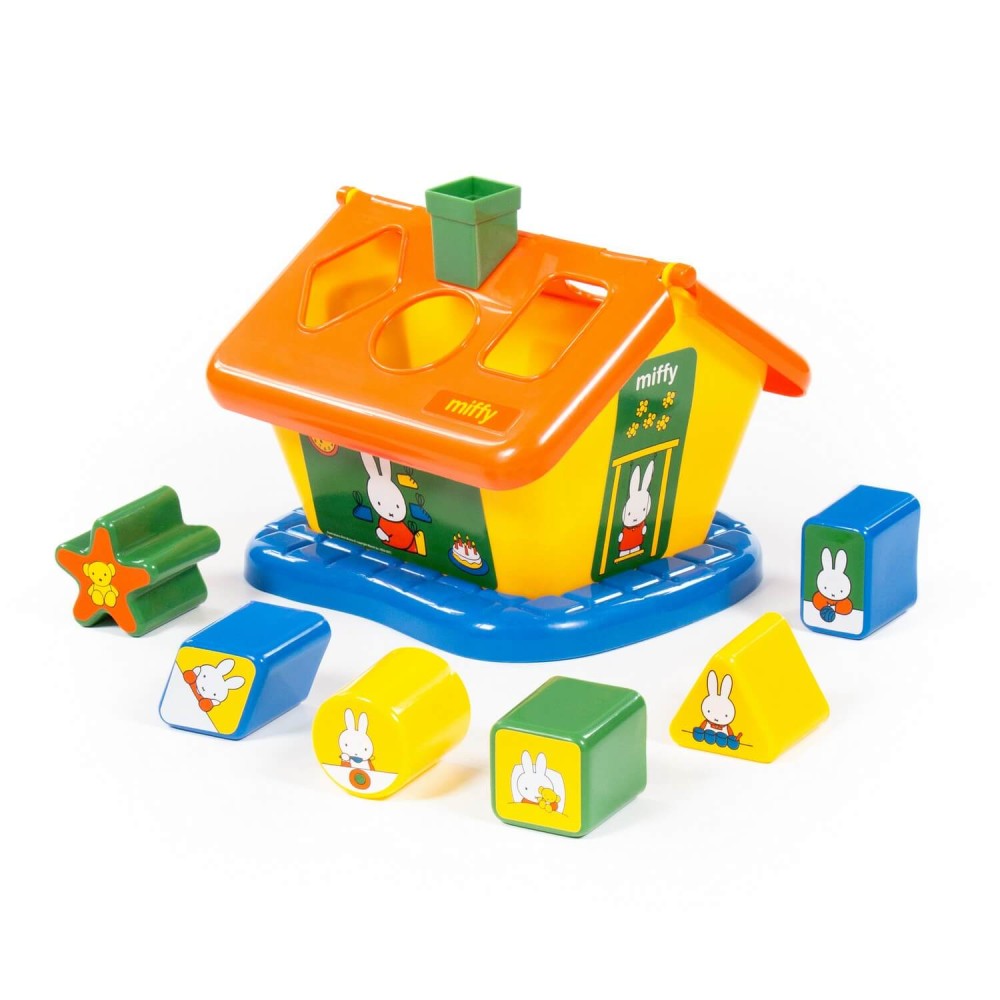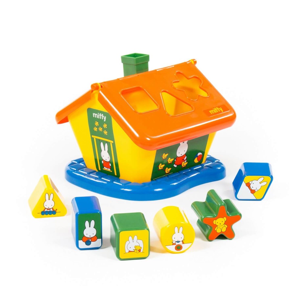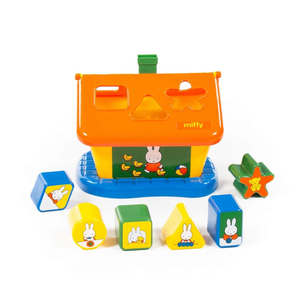 Фабрика по производству пластмассовых игрушек «Полесье» выпускает продукцию под брендом Миффи (Miffy). Маленькая девочка-кролик разнообразит игру и сделает её еще интереснее. Логический домик "Миффи" с 6 кубиками №2 – это яркий домик, который знакомит ребёнка с цветом и формой; развивает мелкую моторику рук, воображение, логику, умение совершать пространственные перемещения. На крыше домика располагается 6 отверстий разных форм. Малыш должен решить логическую задачу и определить, какая форма соответствует одной из шести фигур, входящих в набор. Игрушка выполнена в узнаваемых цветах, она безопасна и способствует развитию малышей!