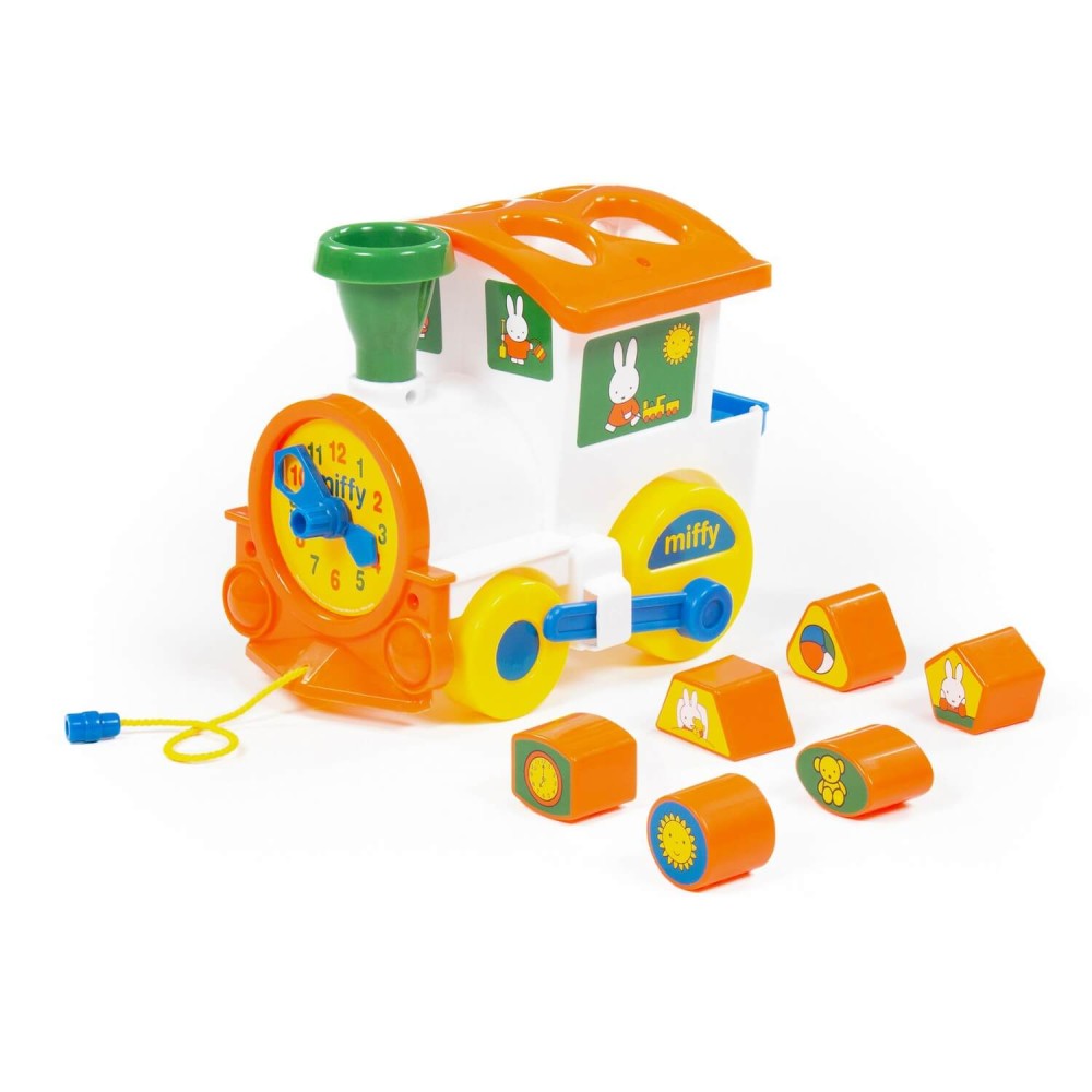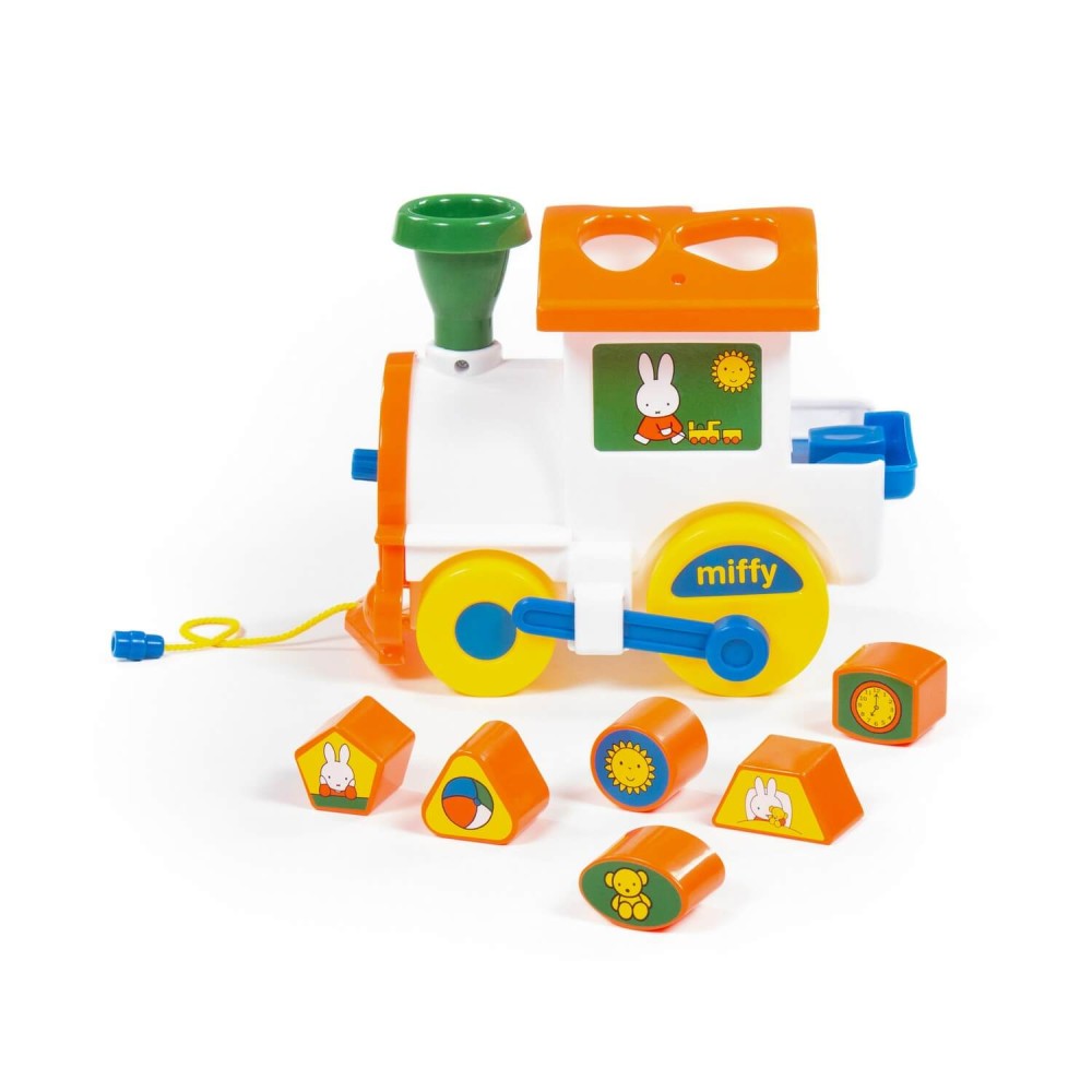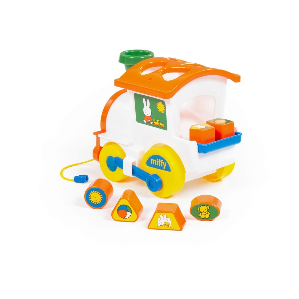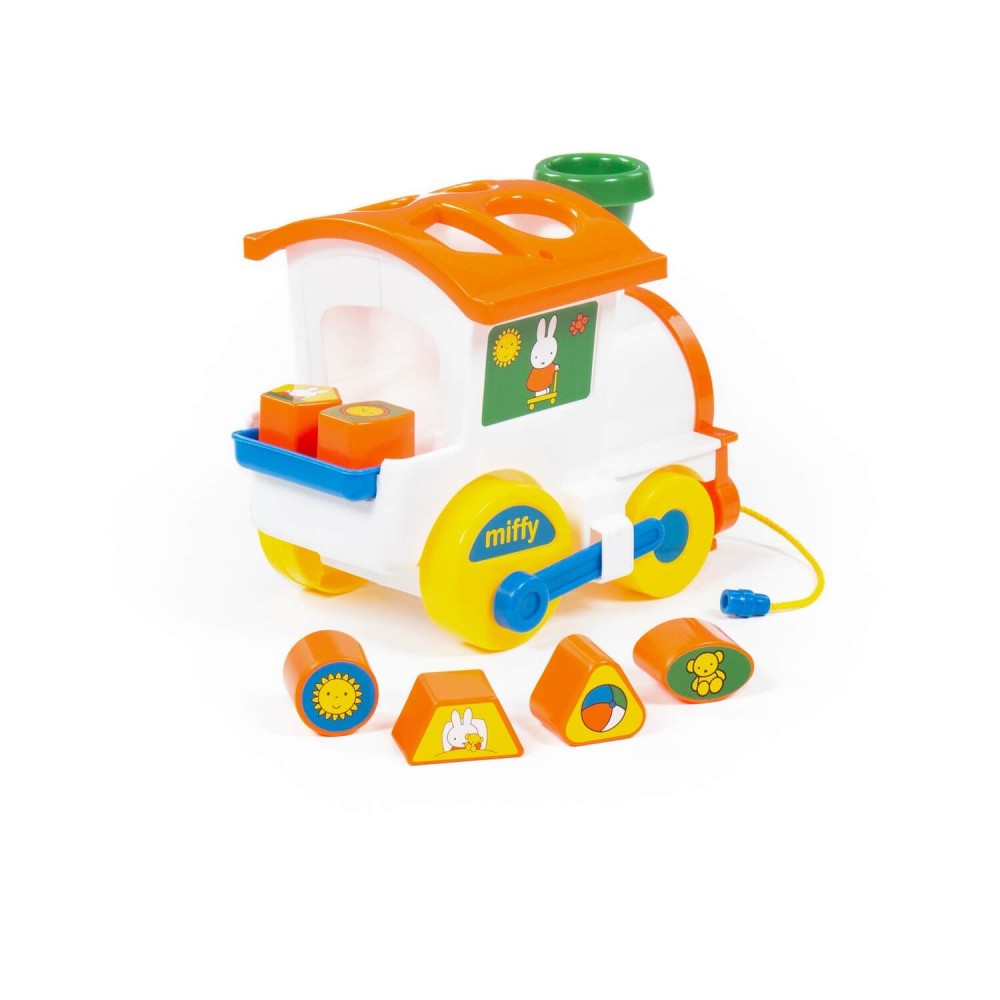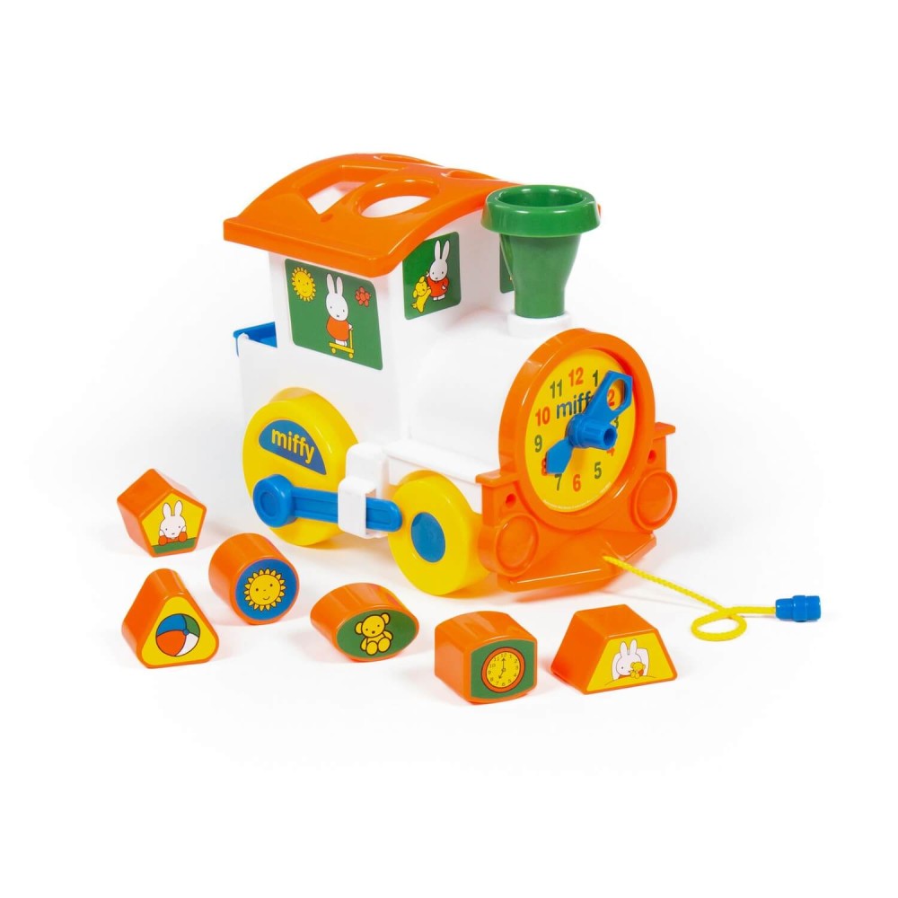 Паровозик-головоломка серии «Миффи» компактный и функциональный. Его можно использовать в качестве машинки, каталки на шнурке и сортера. Малышам предстоит решить задачку: на крыше паровозика четыре отверстия, к каждому нужно подобрать соответствующую по форме фигурку. Всего в комплекте 6 фигурок. Функции паровозика универсальны, а игра с ним полезна для координации движений малыша. Игрушка развивает логическое мышление, память, внимательность, умение анализировать. Это очень удобный способ познакомить малышей с фигурами и цветами. Впереди паровозика – циферблат для знакомства с числами и временем. Фигурки из контейнера легко достать. А перевозить в паровозике можно и другие мелкие «грузы». Игрушка со сглаженными углами безопасна, выполнена из качественного пластика в двух цветовых вариантах. Игрушка упакована в сеточку.