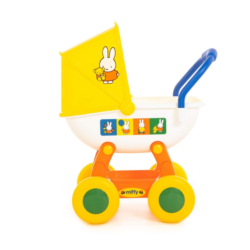 Компания «Полесье» разработала серию игрушек «Миффи». Коляска для пупсов и кукол данной серии имеет стильный дизайн и является мини-копией оригинальной коляски. Конструкция надёжная, ведь она выполнена из качественного пластика. Под люлькой находится корзина для вещей, а сверху предусмотрен защитный козырёк. Коляска имеет функцию каталки, что позволяет малышке усовершенствовать навыки ходьбы. Украшают коляску наклейки с главным персонажем мультсериала — девочкой-кроликом Миффи. Игрушка выполнена в стильных цветах и способствует развитию координации движений ребёнка.