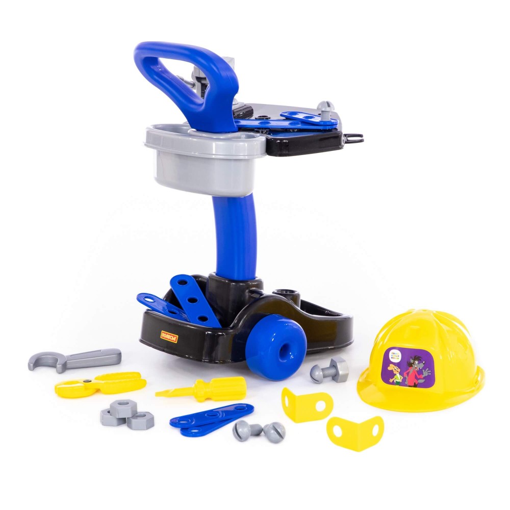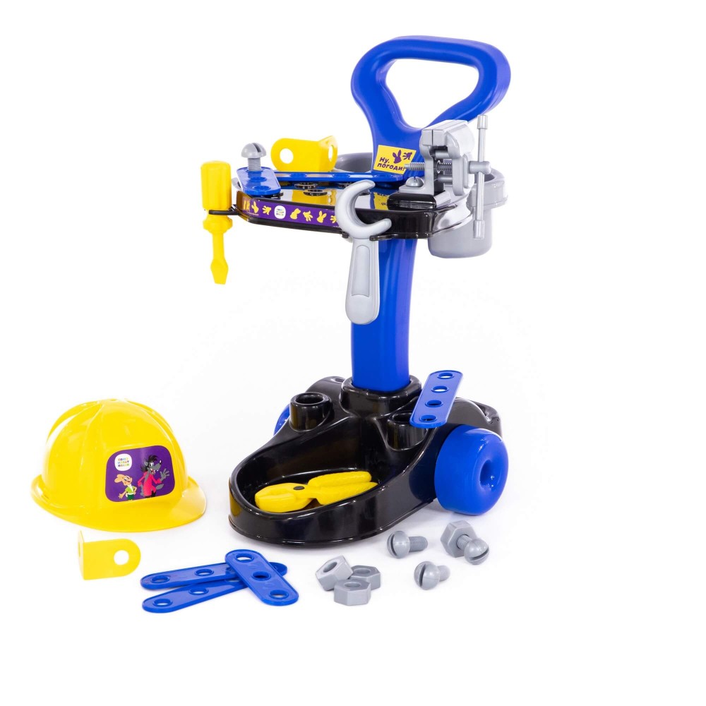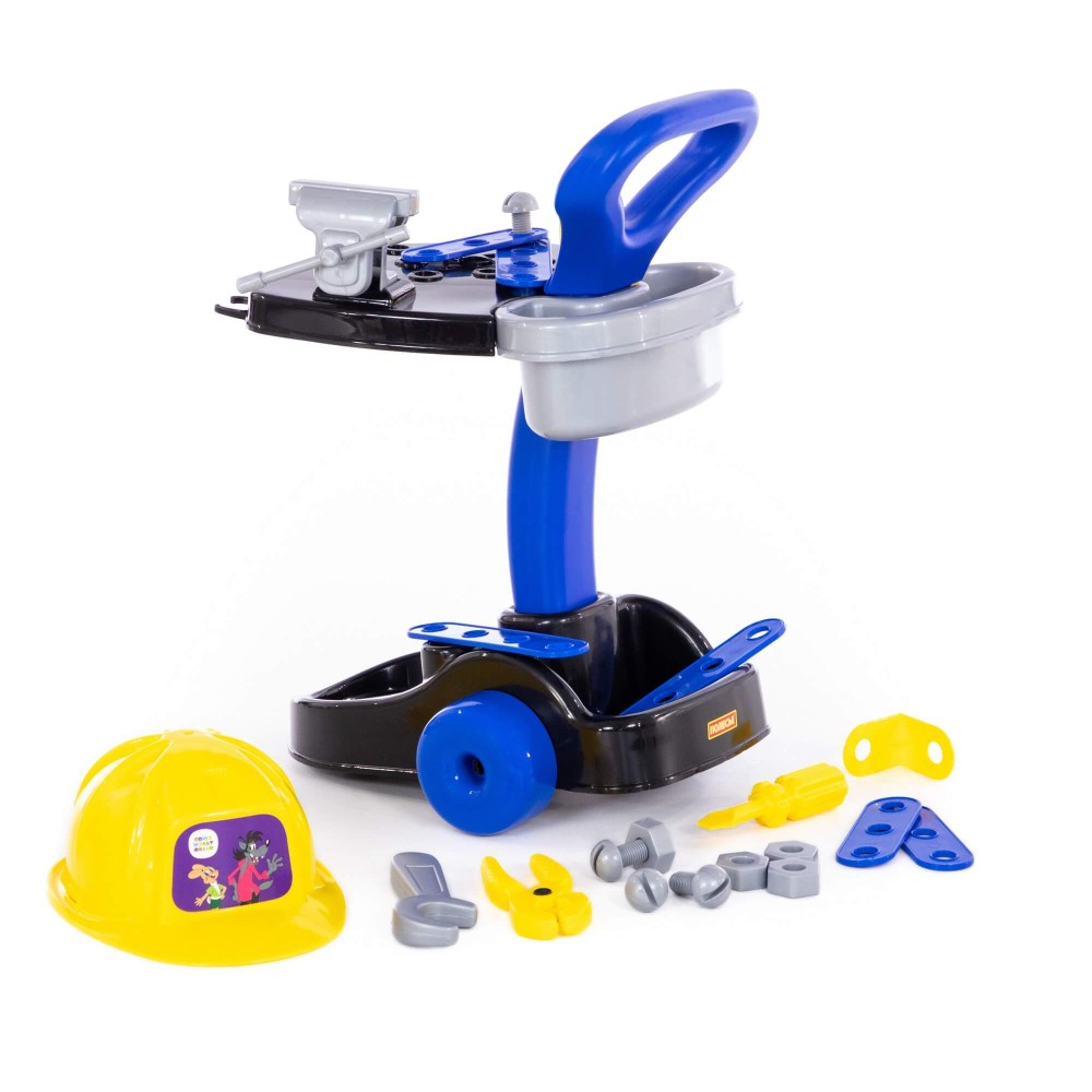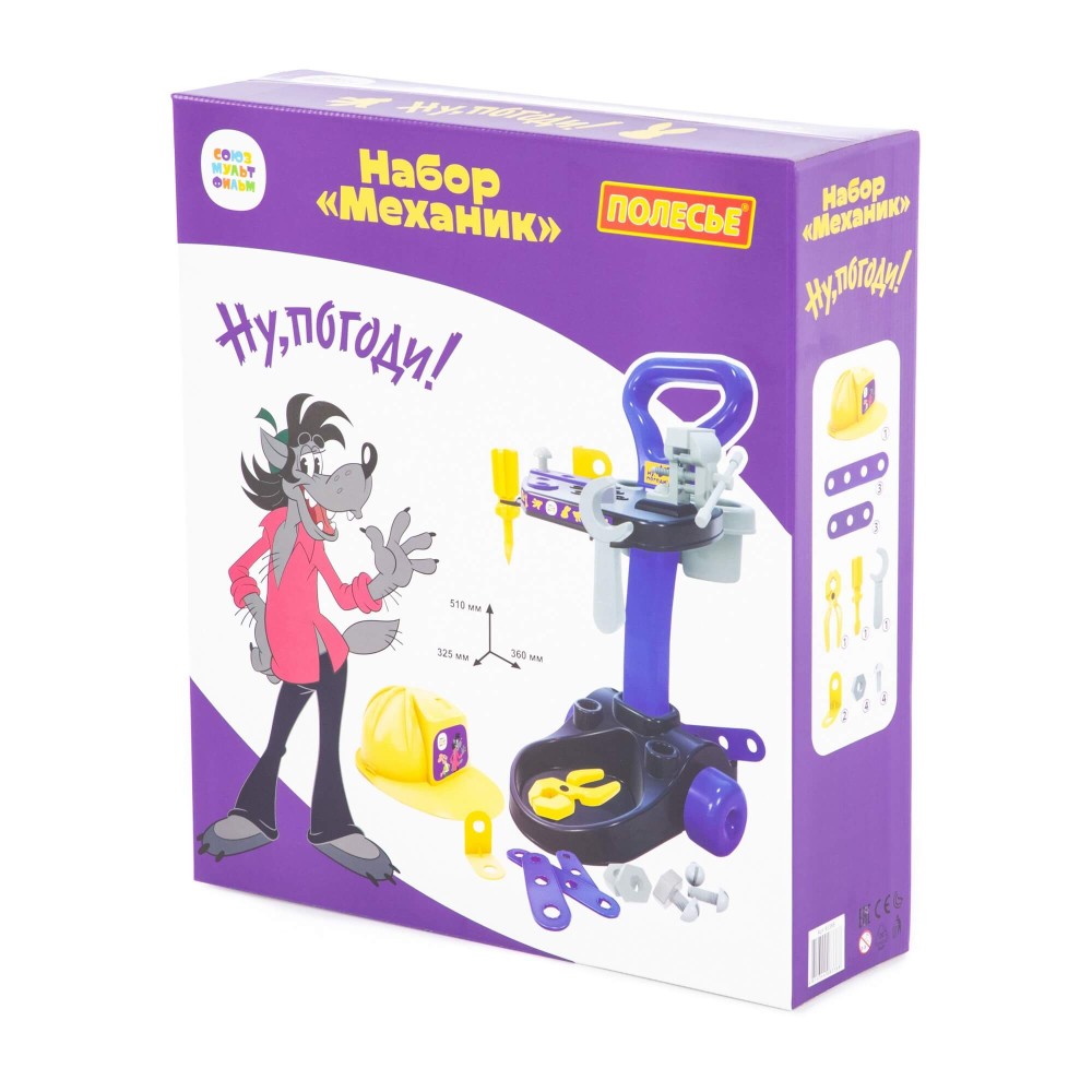 Фабрика «Полесье» и киностудия «Союзмультфильм» представляют набор «Механик «Ну, погоди!». Комплект научит мальчиков пользоваться мини-копиями оригинальных инструментов, фантазировать, соединять детали между собой. Набор знакомит малышей с профессией техника-механика; способствует развитию творческого потенциала, моторики рук, координации движений. Все принадлежности компактно расположены на передвижной тележке, что позволяет удобно перемещать и хранить набор. Вверху тележки предусмотрена платформа для инструментов, на ней же установлены игрушечные тиски. Внизу конструкции имеются вместительные ниши для строительного инвентаря. В комплект входят: