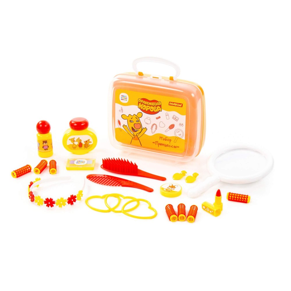 Устроить салон красоты даже на прогулке позволит игровой набор принцессы «Оранжевая корова» от компании «Полесье». Он компактный, его удобно брать с собой в гости, в путешествие... Набор выполнен в яркой цветовой гамме, украшен наклейками с изображением главных героев современного мультсериала "Оранжевая корова" производства киностудии «Союзмультфильм». С игровым набором девочка научится следить за собой, наряжаться, фантазировать и делать причёски. Все аксессуары для маленькой принцессы упакованы в красочный чемоданчик, в котором их удобно хранить и перемещать. В набор входят: