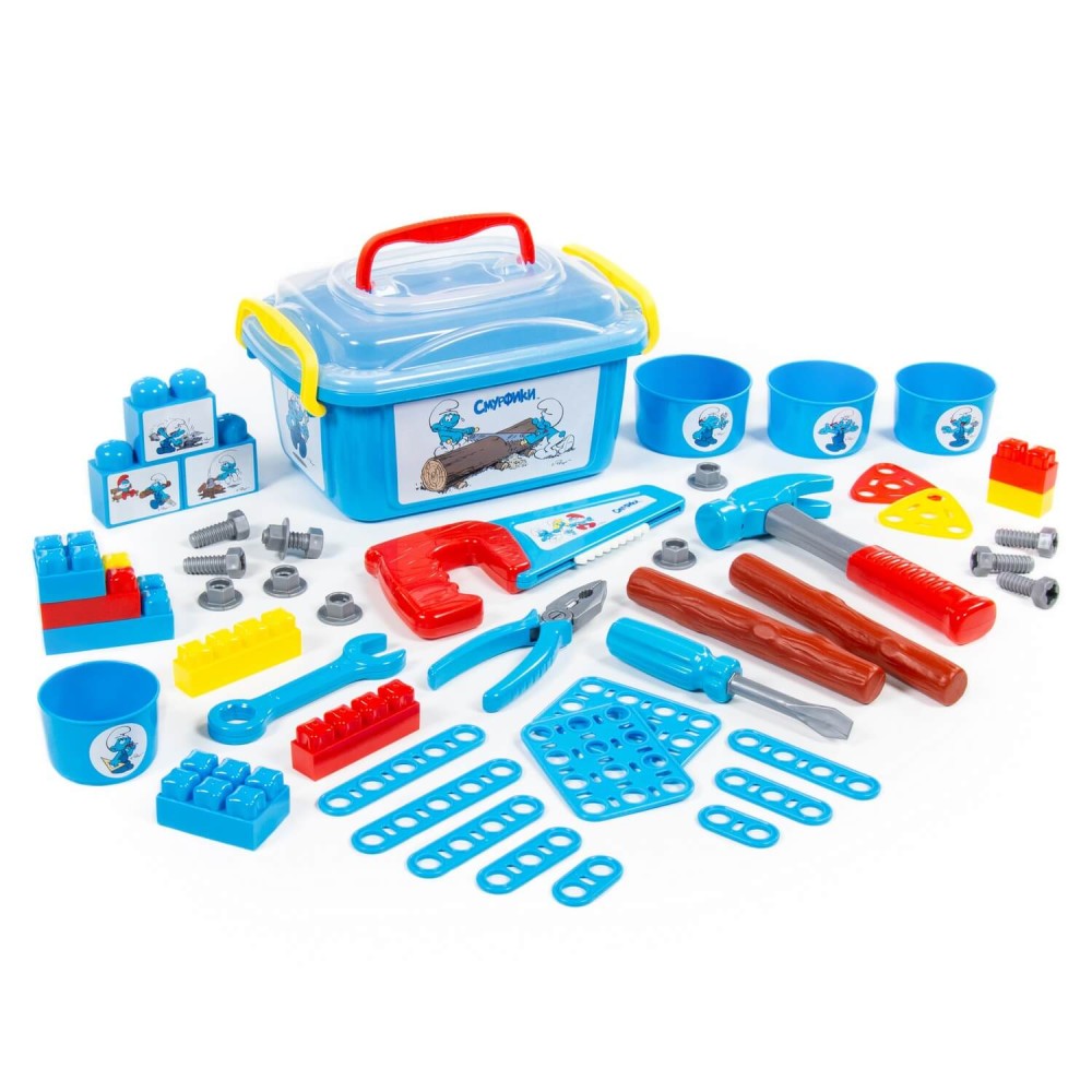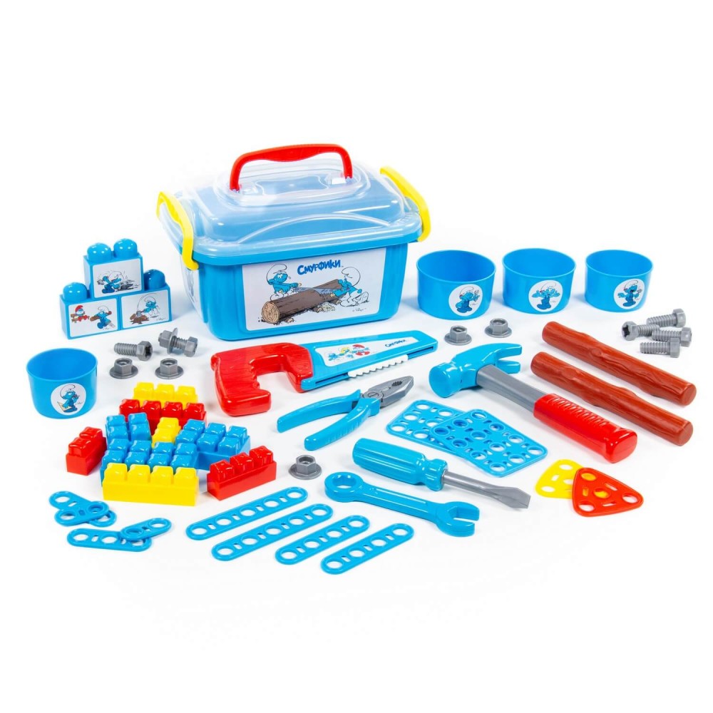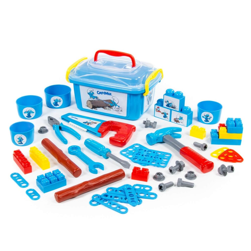 Фабрика по производству пластмассовых игрушек «Полесье» выпускает продукцию по лицензии «Смурфики». Любимые детьми, любознательные и очень весёлые мультипликационные герои разнообразят игру и сделают её ещё интереснее. Набор "Смурфик-мастер" помогает познакомить детей с основными особенностями взаимодействия отдельных частей и деталей, развивает пространственное воображение. Комплект включает в себя: