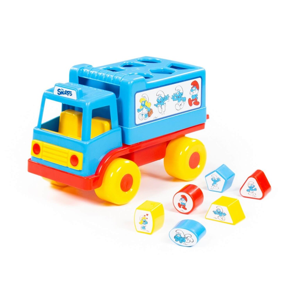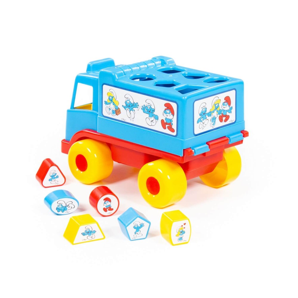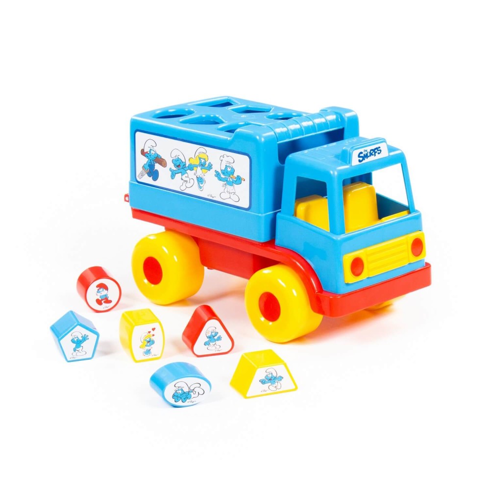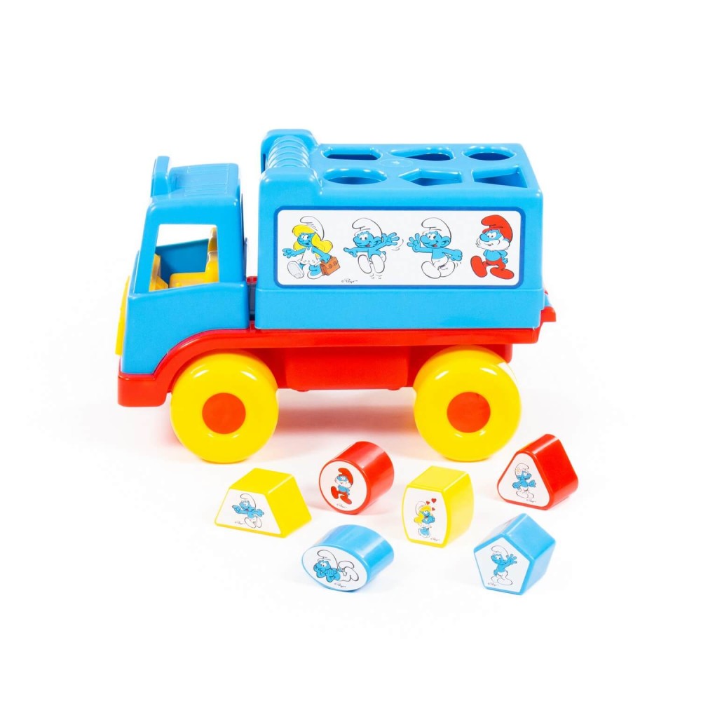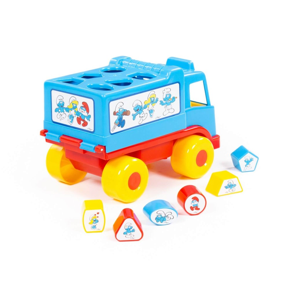 Фабрика по производству пластмассовых игрушек «Полесье» выпускает продукцию по лицензии «Смурфики». Любимые детьми, любознательные и очень весёлые мультипликационные герои разнообразят игру и сделают её ещё интереснее. Логический грузовичок "Смурфики" - это не просто грузовик, а развивающая игрушка для детей до 3-х лет. В кузове автомобиля логическая задачка - 6 отверстий-пазлов разных геометрических форм, для которых малышу нужно подобрать соответствующие фигуры. На фигурках имеются наклейки с картинками. Также малыш легко достанет фигурки из кузова, потянув за отверстие возле кабины. Под крышкой кузова имеется углубление, ребёнок сможет перевозить не только фигурки из комплекта, но и другие мелкие игрушки и детали конструктора. Логический грузовичок "Смурфики" надолго увлечёт малыша, развивая при этом пространственное мышление, воображение, логику, мелкую моторику рук ребёнка.