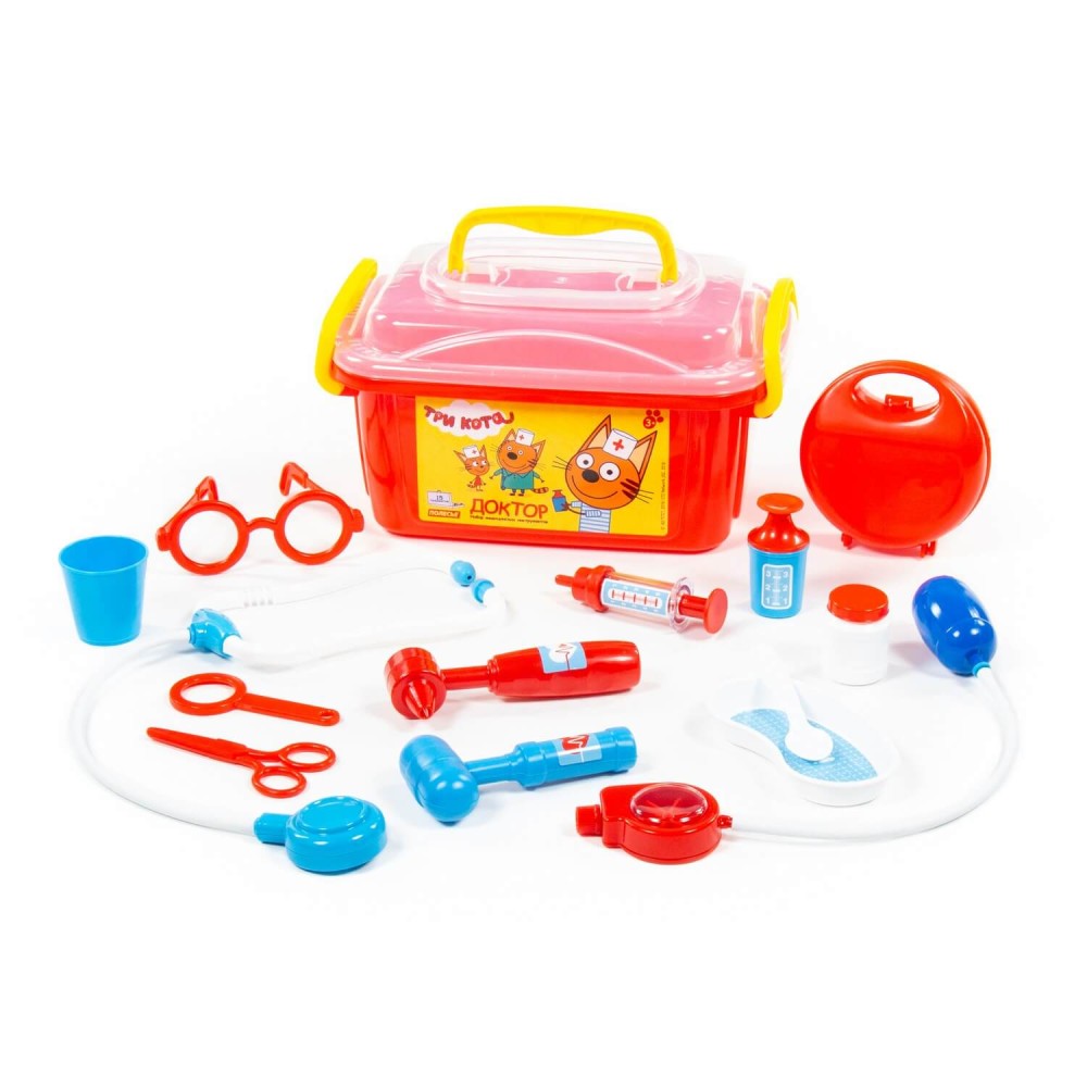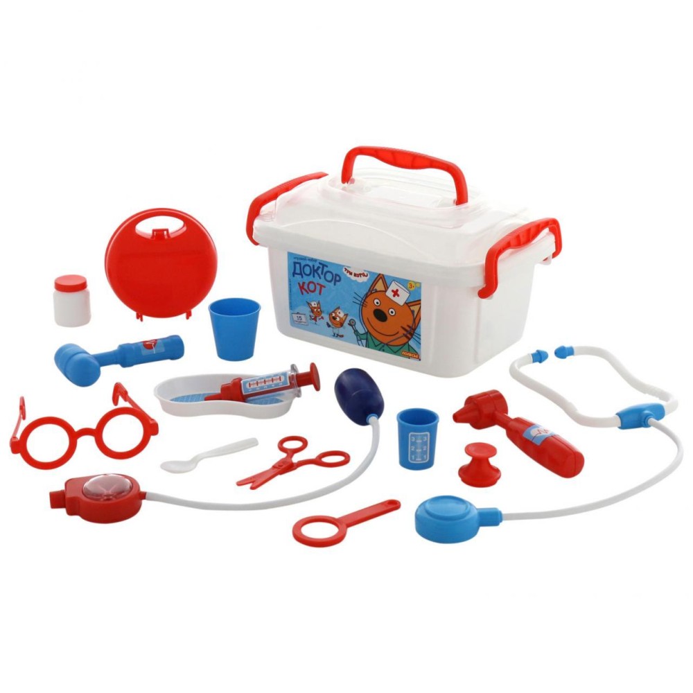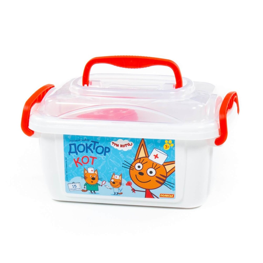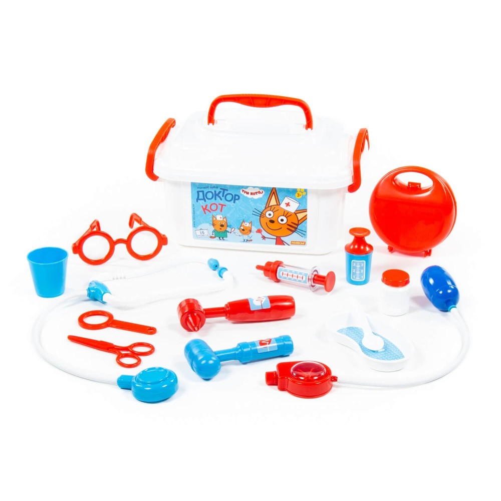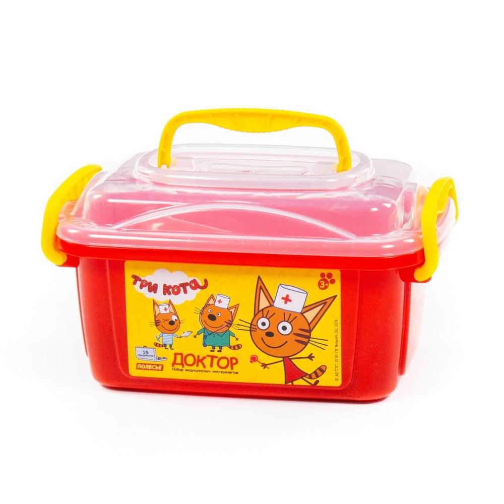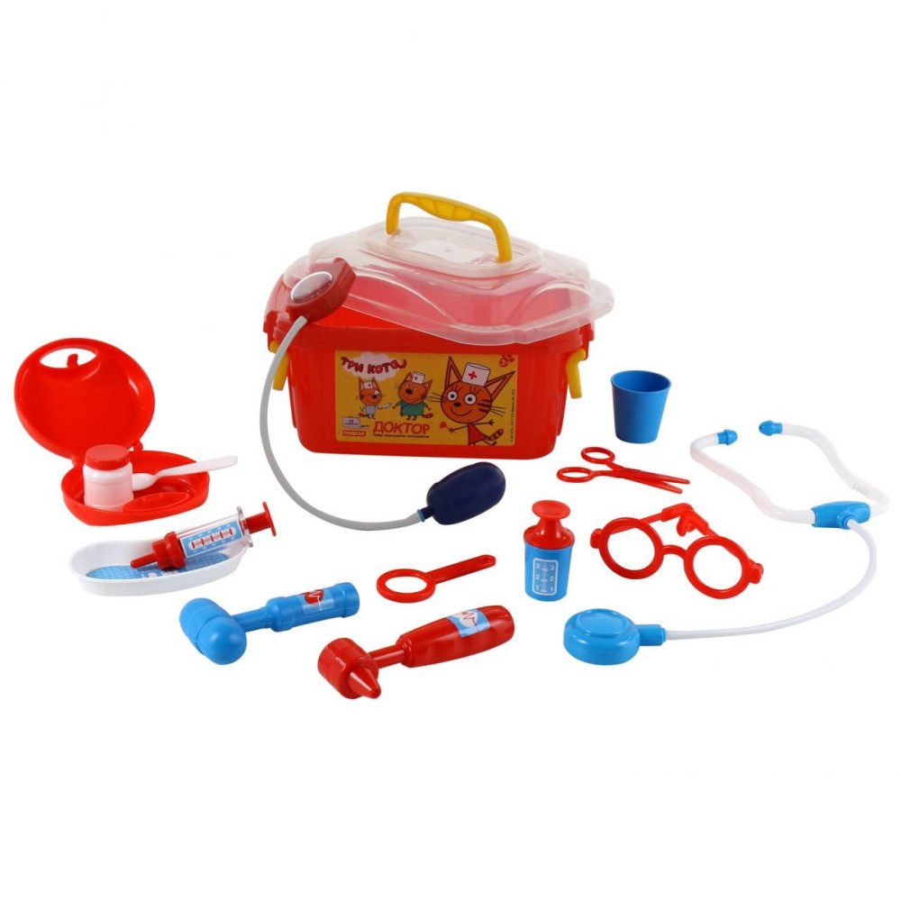 Теперь озорные котята из мультфильма «Три кота» будут радовать детей во время игр с набором доктора от фабрики «Полесье». Детские игрушки выделяются ярким дизайном, частью которого стали хвостатые персонажи из любимого мультсериала. «Три кота» рассказывают о повседневной жизни маленьких, но очень любознательных котят: Коржика, Компота и их младшей сестренки Карамельки. В состав набора «Три кота» «Доктор» входят: