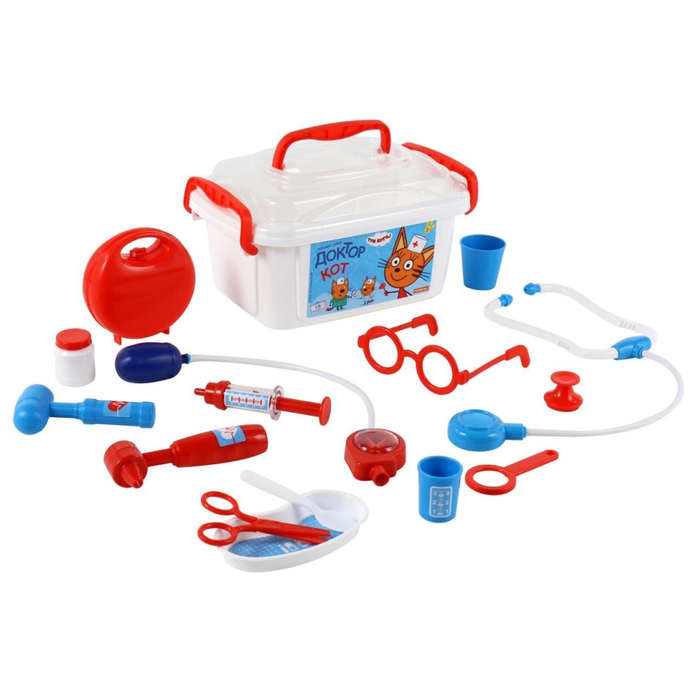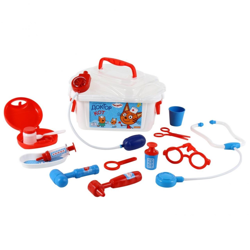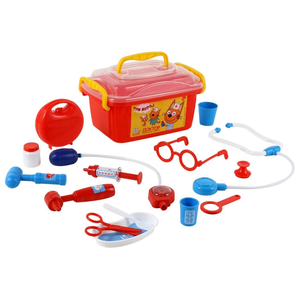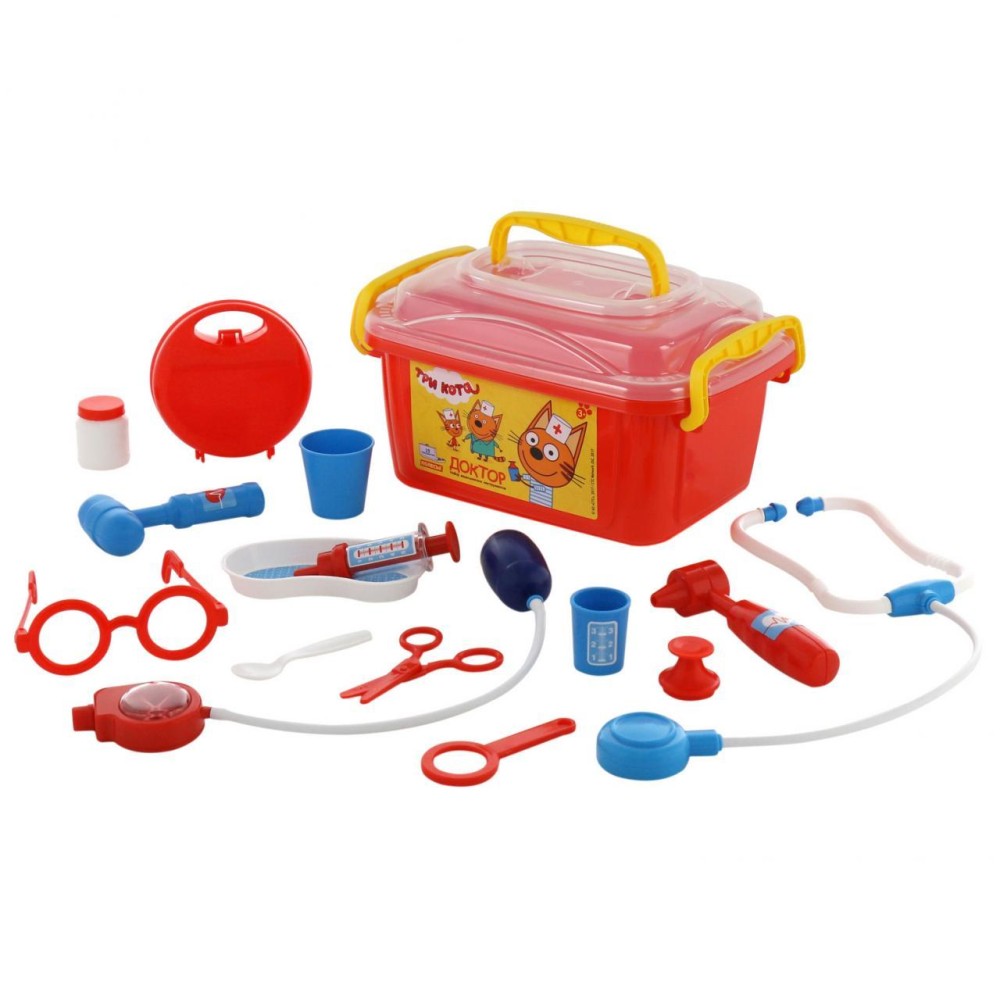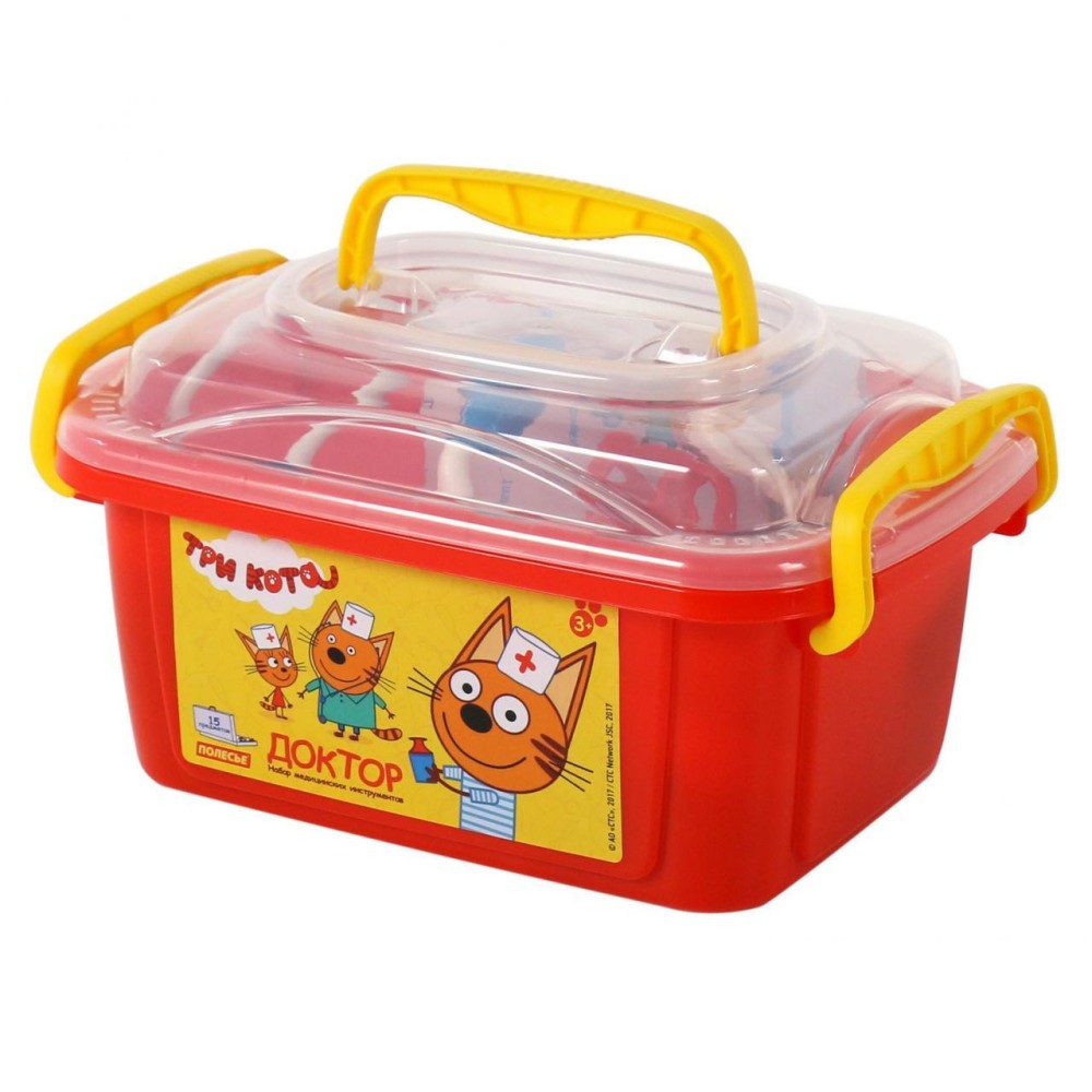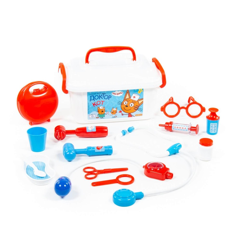 Теперь озорные котята из мультфильма «Три кота» будут радовать детей во время игр с набором доктора от фабрики «Полесье». Детские игрушки выделяются ярким дизайном, частью которого стали хвостатые персонажи из любимого мультсериала. «Три кота» рассказывают о повседневной жизни маленьких, но очень любознательных котят: Коржика, Компота и их младшей сестренки Карамельки. В состав набора «Три кота» «Доктор» входят: