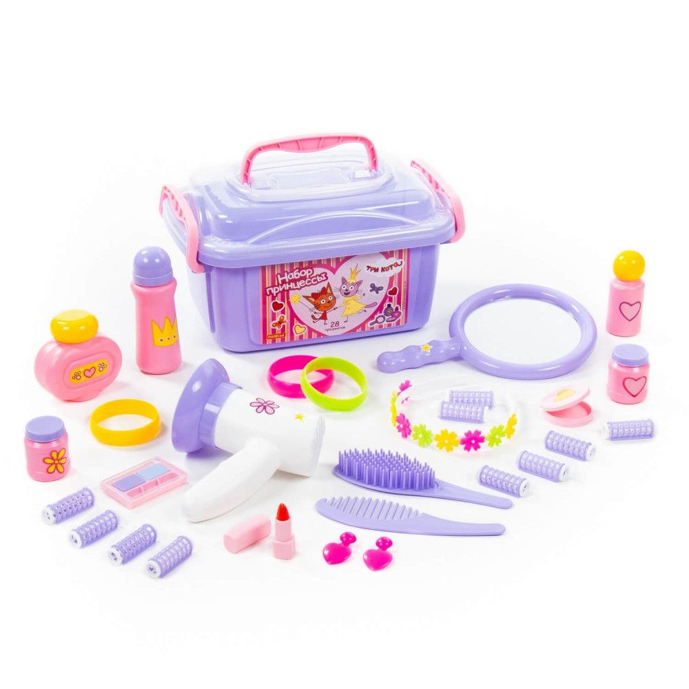 Теперь озорные котята из мультфильма «Три кота» будут радовать детей во время игр с набором «Принцессы» от фабрики «Полесье». Детские игрушки выделяются ярким дизайном, частью которого стали хвостатые персонажи из любимого мультсериала. «Три кота» рассказывают о повседневной жизни маленьких, но очень любознательных котят: Коржика, Компота и их младшей сестренки Карамельки. Набор детских украшений и парикмахерских принадлежностей для маленьких красавиц от 3 лет. В состав набора «Три кота» «Принцессы» входят: