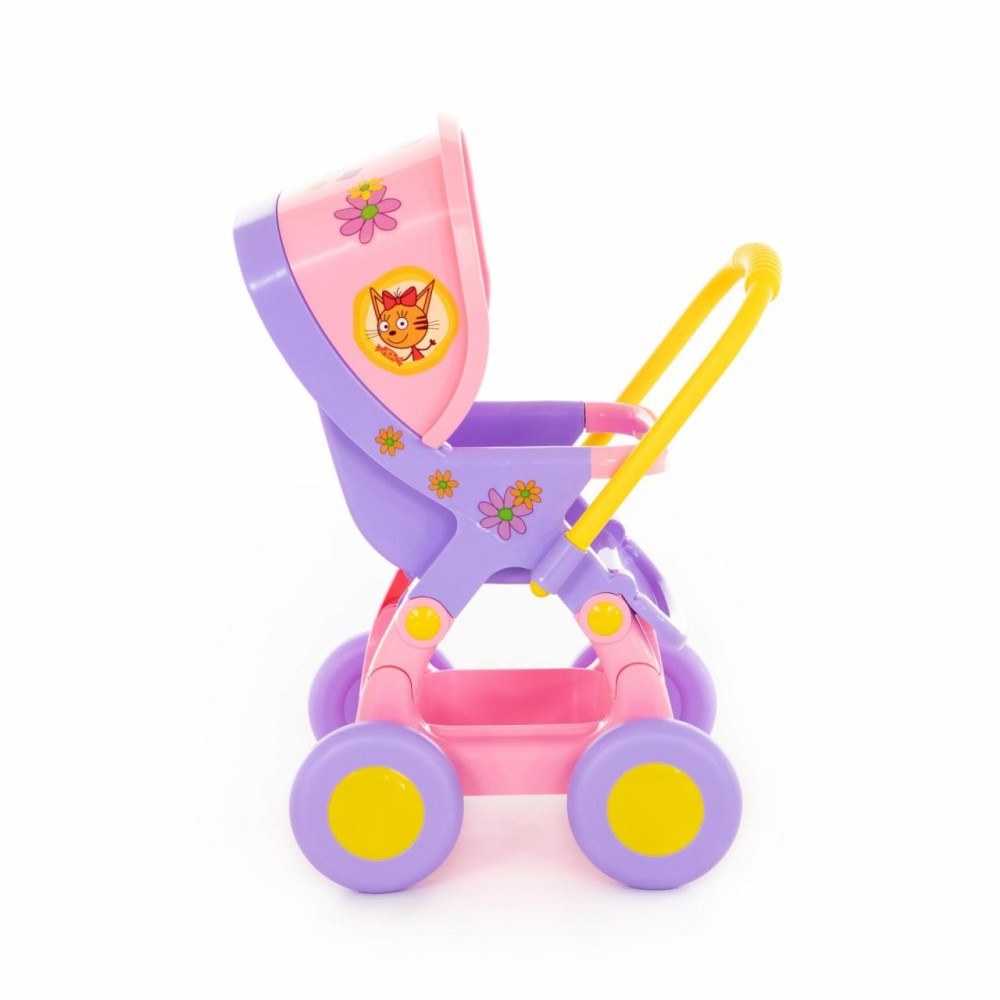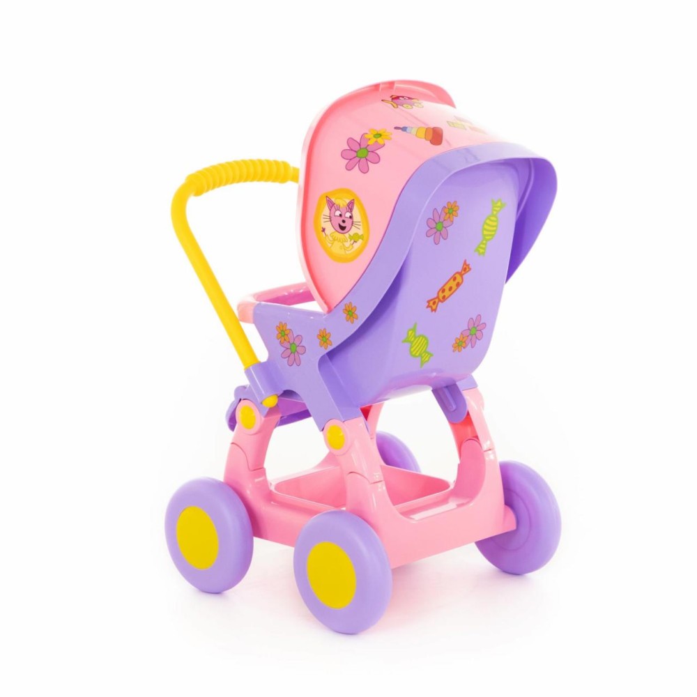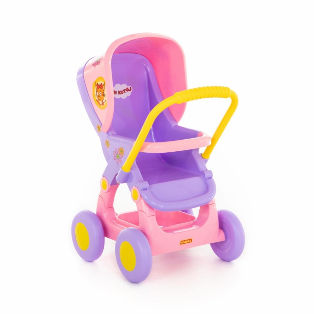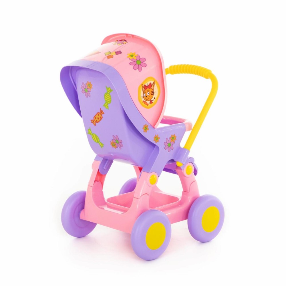 Прогулочная коляска для пупсов и кукол серии «Три кота» имеет стильный дизайн и является мини-копией оригинальной коляски. Конструкция надёжная, ведь она выполнена из качественного пластика. Под люлькой находится корзина для вещей, а сверху предусмотрен защитный козырёк. Модель украшена наклейками с изображением героев из мультфильма про весёлых котят и выполнена в жизнерадостных цветах. Коляска имеет функцию каталки, что позволяет малышке усовершенствовать навыки ходьбы.