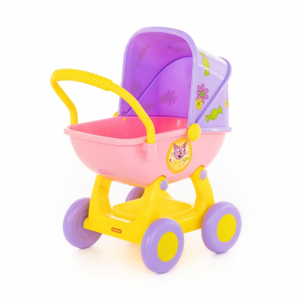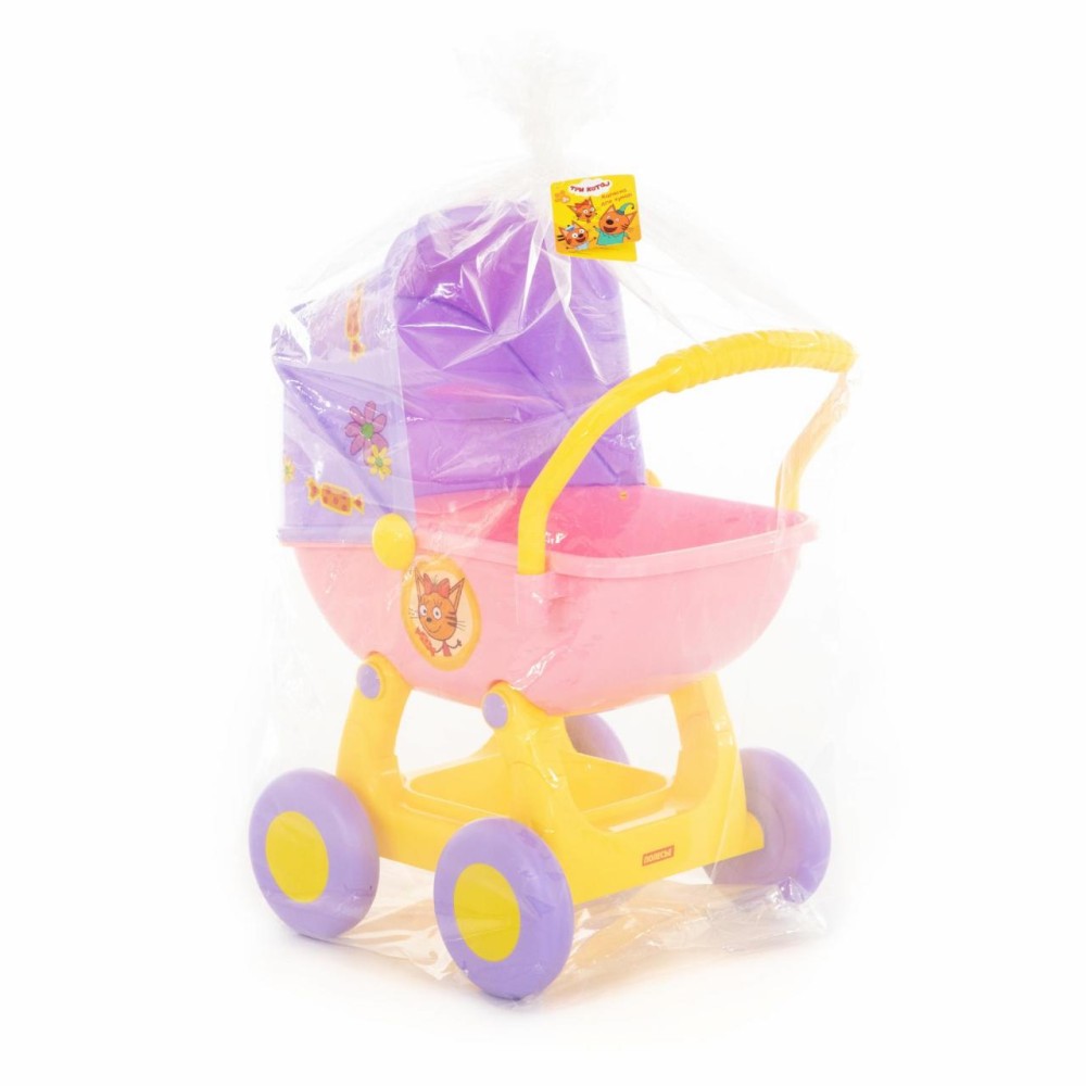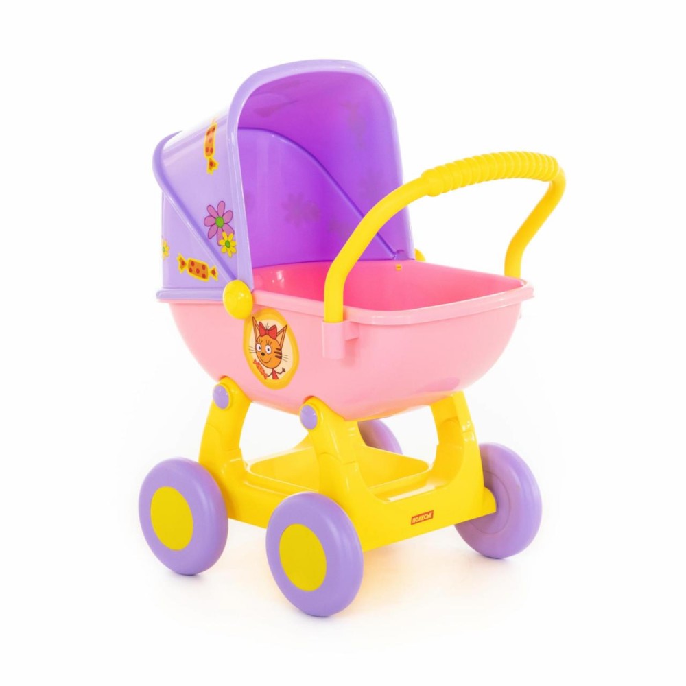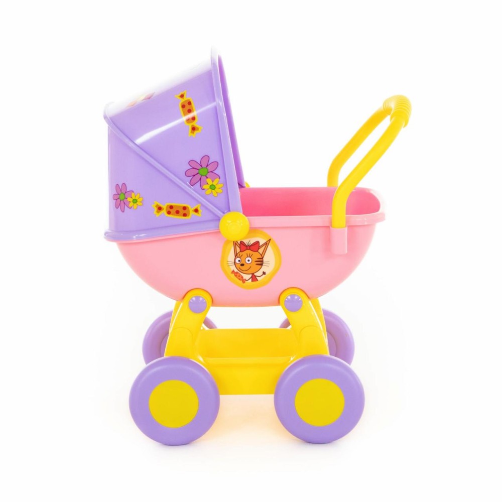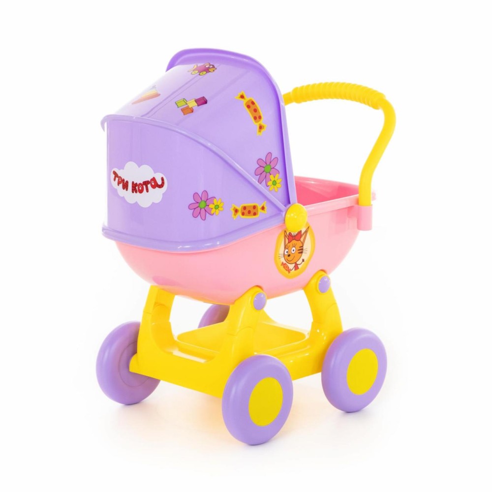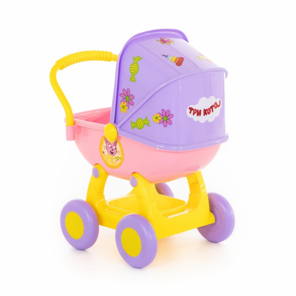 Коляска для пупсов и кукол серии «Три кота» имеет стильный дизайн и является мини-копией оригинальной коляски. Конструкция надёжная, ведь она выполнена из качественного пластика. Под люлькой находится корзина для вещей, а сверху предусмотрен защитный козырёк. Модель украшена наклейками с изображением героев из мультфильма про весёлых котят и выполнена в жизнерадостных цветах. Коляска имеет функцию каталки, что позволяет малышке усовершенствовать навыки ходьбы.