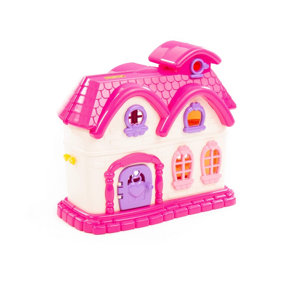Кукольный домик «Сказка» выглядит словно пряничный сказочный домик. Домик раскрывается, позволяя играть сразу на двух этажах. Все элементы изделия имеют скругленные углы, что делает игру безопасной, а яркий дизайн не дает надолго забыть о любимой игрушке.