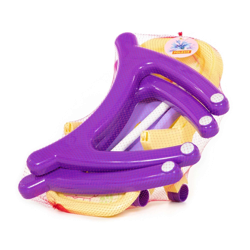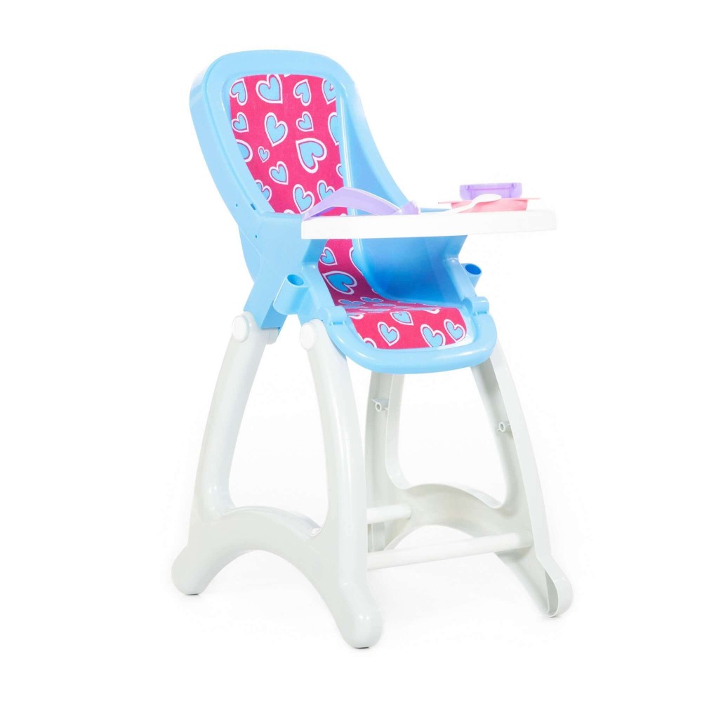 Сборный стульчик для кормления станет прекрасным дополнением к набору мебели для кукол. Для реалистичной игры в комплект входят тарелочка, ложечка, поильник и слюнявчик. Набор производится в нескольких цветовых вариантах.