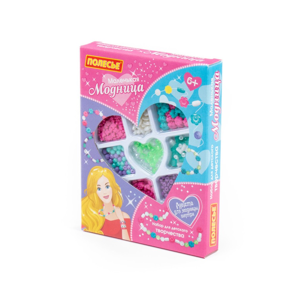 Набор для детского творчества "Маленькая модница" (235 элементов) (в коробке) от фабрики "Полесье" позволит ребёнку почувствовать себя настоящим дизайнером бижутерии, а также научит создавать удивительные аксессуары! В комплект входит более 200 бусинок, шнурок и резиночка для украшений. Все бусины имеют разную форму и цвет, выполнены из качественного пластика. Разнообразит игру и сделает её ещё интереснее анкета модницы, которая также входит в комплект. С таким набором ребёнок будет фантазировать, творить, создавать своими руками и играть.