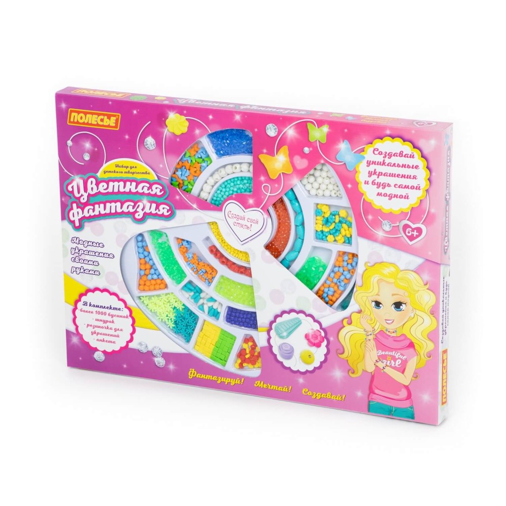 Набор для детского творчества "Цветная фантазия" (1006 элементов) (в коробке) от фабрики "Полесье" позволит ребёнку почувствовать себя настоящим дизайнером бижутерии, а также научит создавать удивительные аксессуары! В комплект входит более 1000 бусинок, шнурок и резиночка для украшений. Все бусины имеют разную форму и цвет, выполнены из качественного пластика. Разнообразит игру и сделает её ещё интереснее анкета модницы, которая также входит в комплект. С таким набором ребёнок сможет фантазировать, творить, создавать своими руками и играть. Он способствует разностороннему развитию ребёнка.