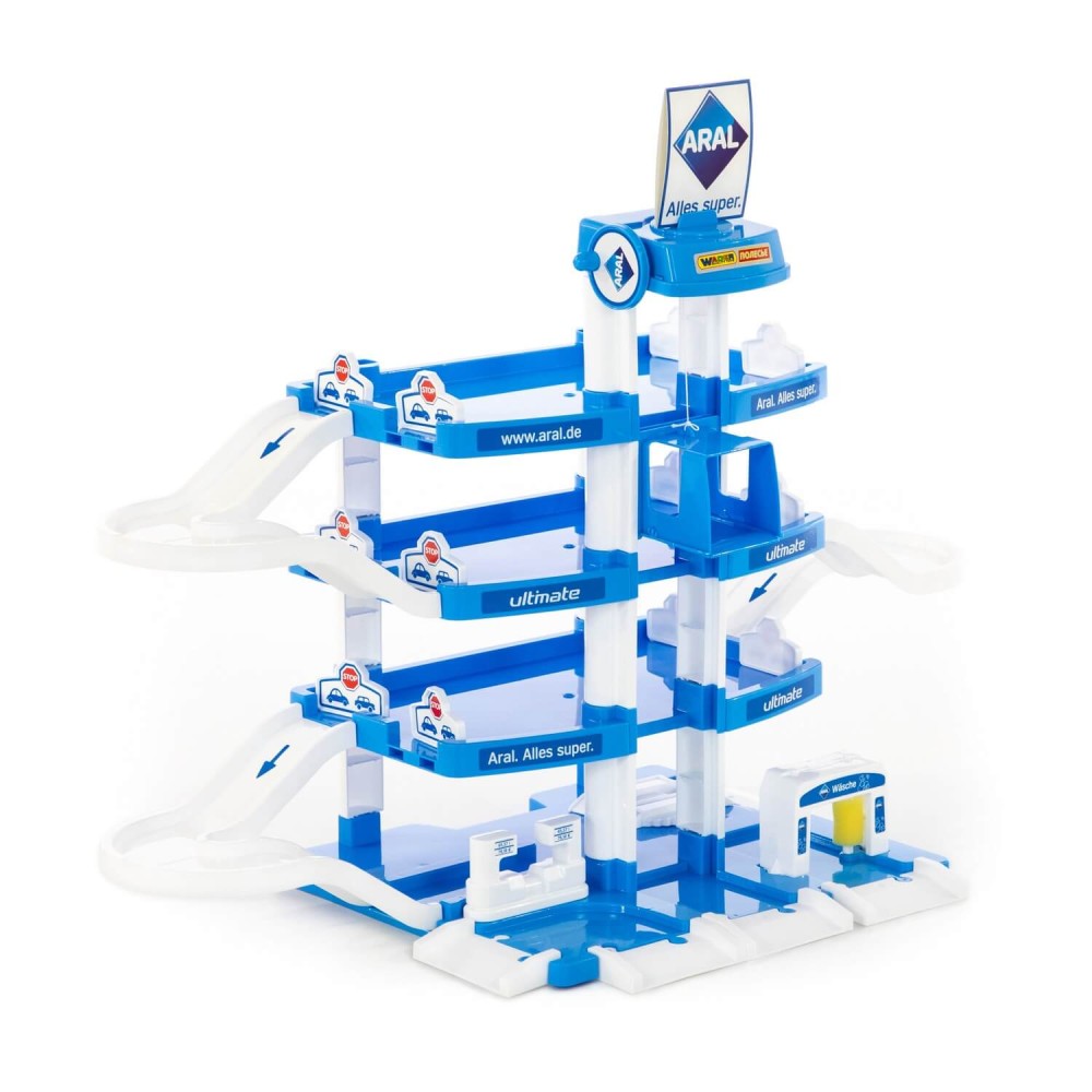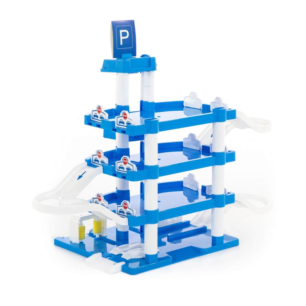 Четырехуровневый паркинг. На первом уровне паркинга расположены автомойка, автозаправка, эстакада. Для подъема на остальные уровни установлен лифт, который приводится в движение с помощью рукоятки на верхнем уровне. Автомобили в набор не входят.