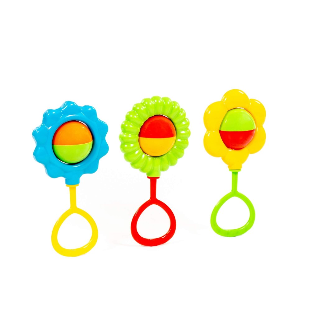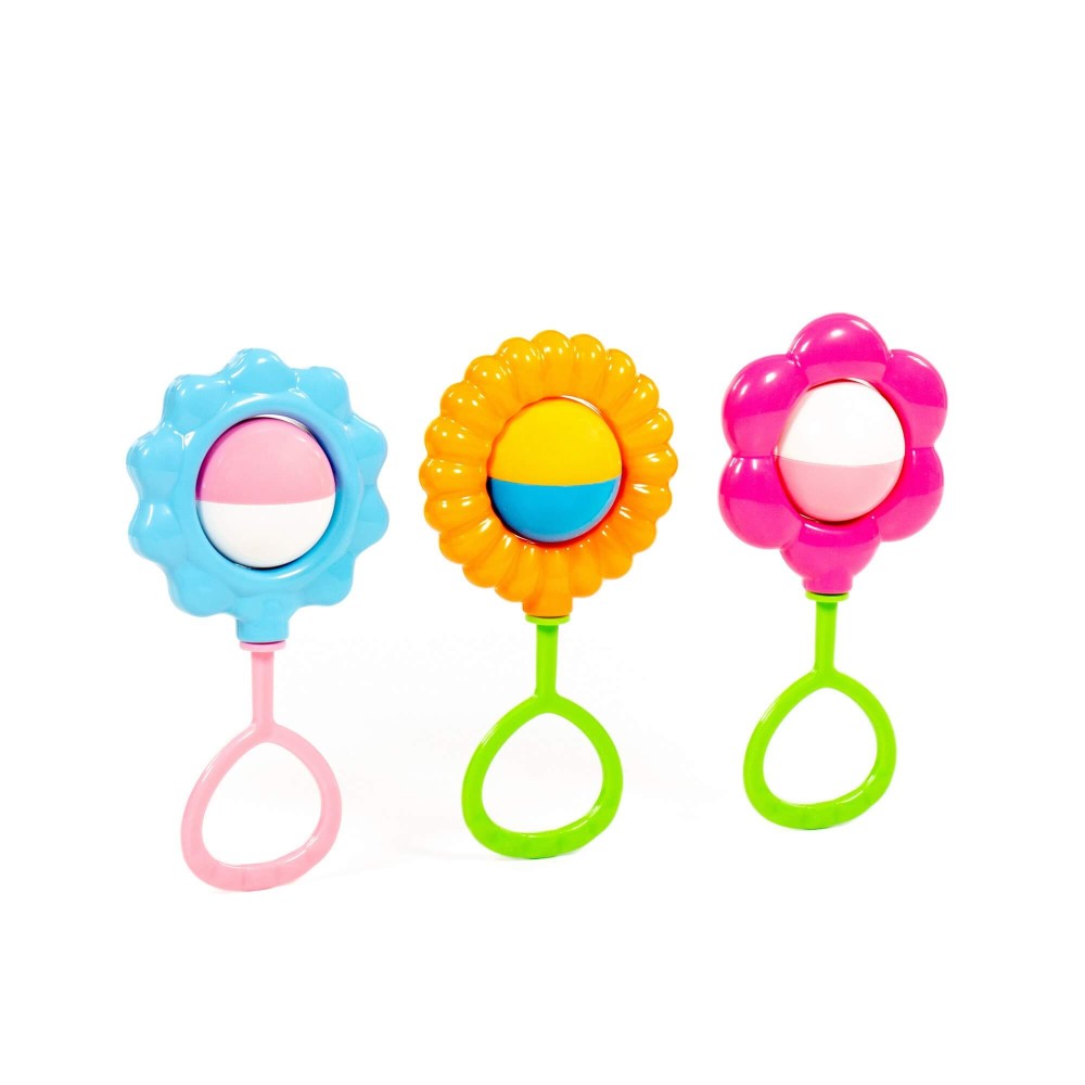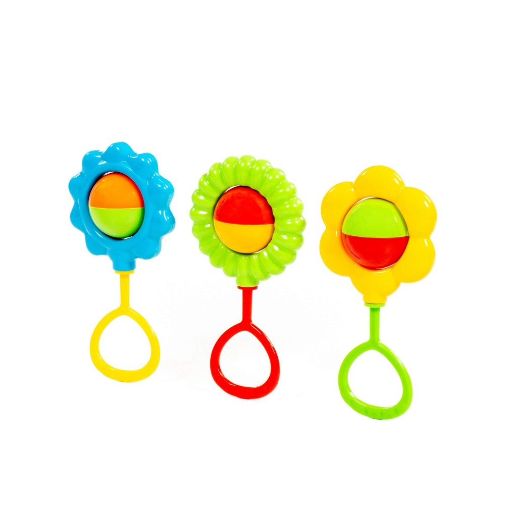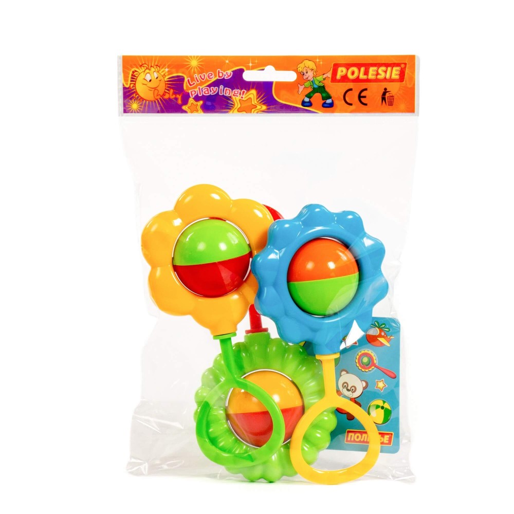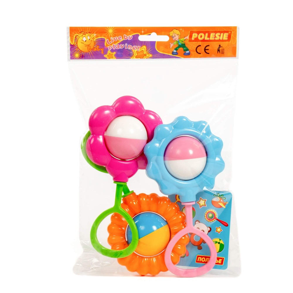 Первая игрушка в жизни малыша — погремушка. Она формирует представление ребёнка о цвете, форме, фактуре окружающих предметов. Погремушки от компании «Полесье» — прекрасные тактильные тренажёры для маленьких пальчиков ребёнка. Игрушки развивают мелкую моторику рук, знакомит с миром цветов и звуков. Погремушки выполнены в виде цветочков, и внутри содержат шарики. Игрушки безопасны для здоровья малыша, так как изготовлены из высококачественного пластика. Стоит отметить, что соединение деталей погремушек происходит путём использования ультразвукового оборудования, а не клеевых материалов.