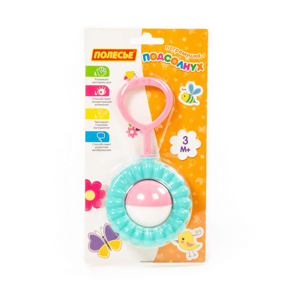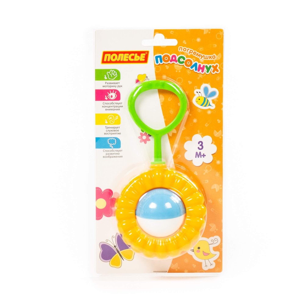 Первая игрушка в жизни малыша — погремушка. Она формирует представление ребёнка о цвете, форме, фактуре окружающих предметов. Погремушка «Подсолнух» от компании «Полесье» — прекрасный тактильный тренажёр для маленьких пальчиков ребёнка. Игрушка развивает мелкую моторику рук, знакомит с миром цветов и звуков. Погремушка выполнена в виде цветочка, и внутри содержит шарики. Игрушка безопасна для здоровья малыша, так как изготовлена из высококачественного пластика. Стоит отметить, что соединение деталей погремушки происходит путём использования ультразвукового оборудования, а не клеевых материалов. Вид упаковки — блистер.