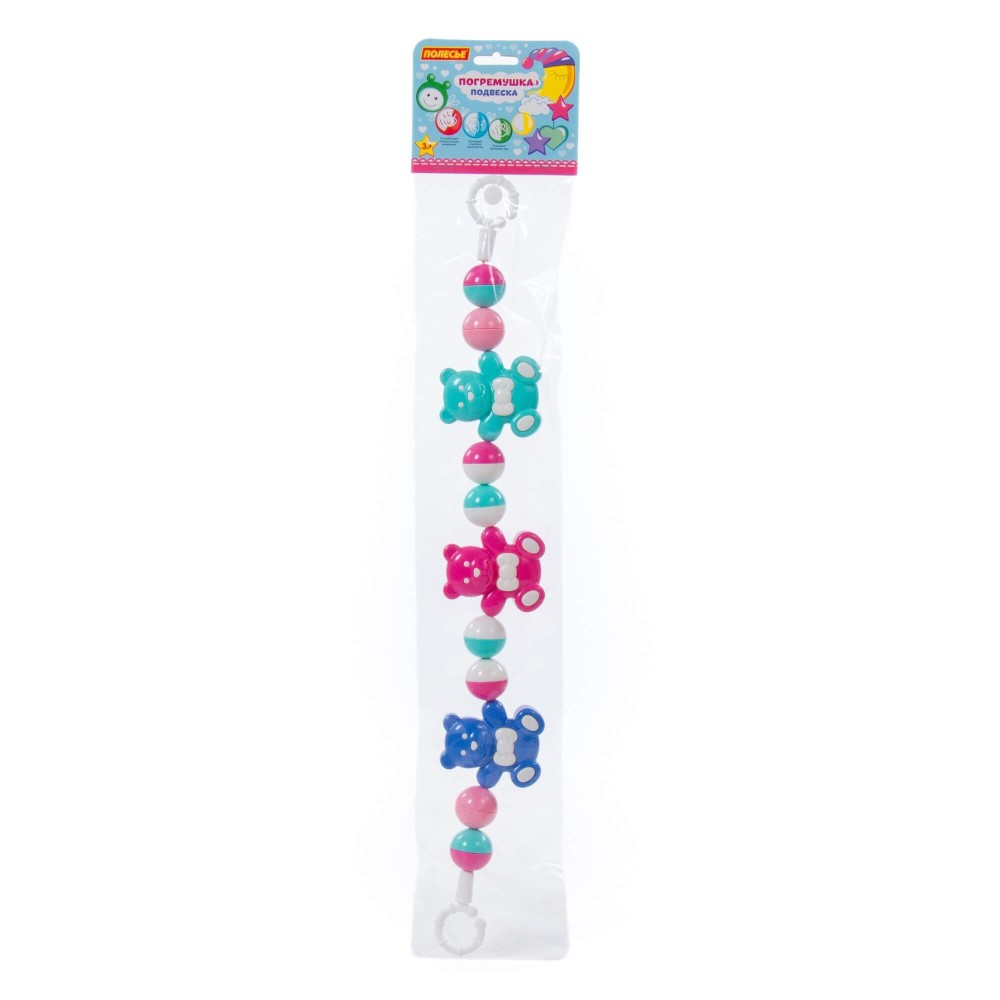 Погремушка-подвеска "Весёлые мишки" от фабрики "Полесье" – это развивающая игрушка. С её помощью ребёнок знакомится с разнообразным миром цветов и звуков. Погремушка выполнена из качественного пластика, имеет округлую форму и яркий дизайн. Игрушка предназначена для детей до 3-х лет.