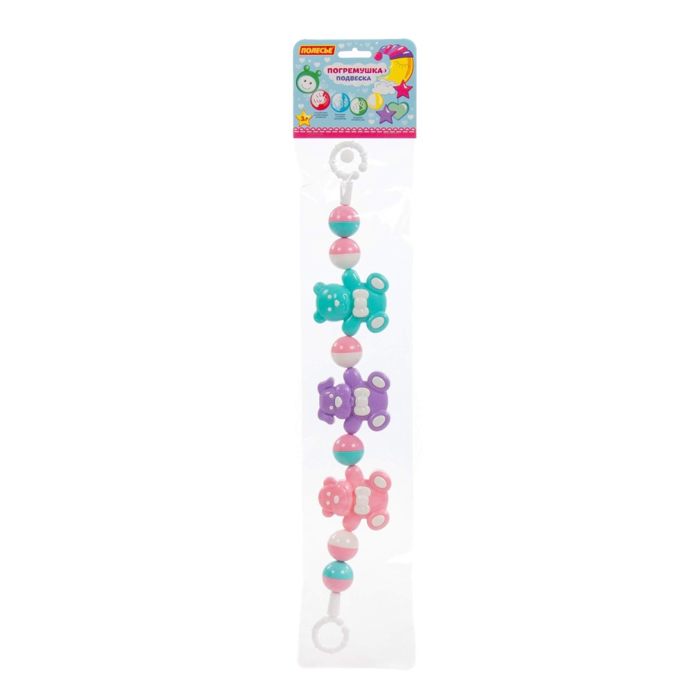 Погремушка-подвеска «Забавные зверята» от фабрики «Полесье» — это развивающая игрушка, которая отвечает за развитие звукового восприятия, а также знакомство ребёнка с цветом. Погремушка выполнена из качественного пластика, имеет округлую форму и яркий дизайн.