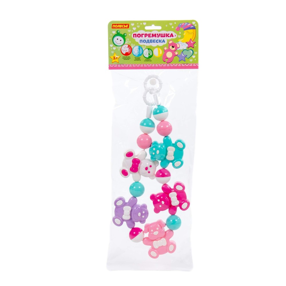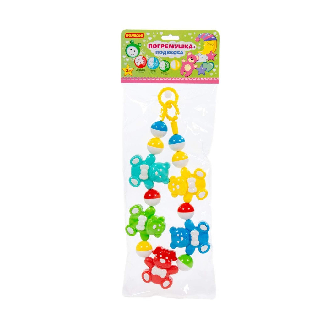 Погремушка-подвеска «Забавные зверята» от фабрики «Полесье» — это развивающая игрушка, которая отвечает за развитие звукового восприятия, а также знакомство ребёнка с цветом. Погремушка выполнена из качественного пластика, имеет округлую форму и яркий дизайн.