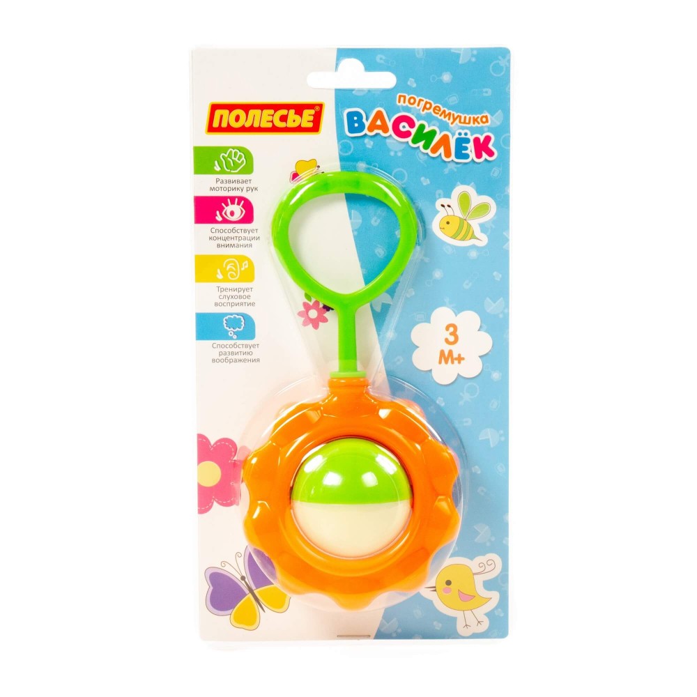 Первая игрушка в жизни малыша — погремушка. Она формирует представление ребёнка о цвете, форме, фактуре окружающих предметов. Погремушка «Василёк» от компании «Полесье» — прекрасный тактильный тренажёр для маленьких пальчиков ребёнка. Игрушка развивает мелкую моторику рук, знакомит с миром цветов и звуков. Погремушка выполнена в виде цветочка, и внутри содержит шарики. Игрушка безопасна для здоровья малыша, так как изготовлена из высококачественного пластика. Стоит отметить, что соединение деталей погремушки происходит путём использования ультразвукового оборудования, а не клеевых материалов. Вид упаковки — блистер.