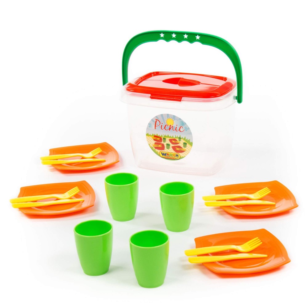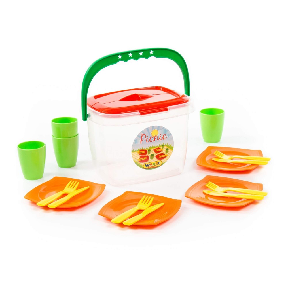 Серия «Алиса» способствует раскрытию потенциала маленькой хозяйки. Умение готовить, содержать быт и заботиться о чистоте очень помогут ей в будущем. Данный комплект упакован в прозрачный контейнер с ручкой, что удобно для перемещения и хранения игрушки. С ним ребёнок с удовольствием будет играть на свежем воздухе и устраивать импровизированные пикники. В набор входят: