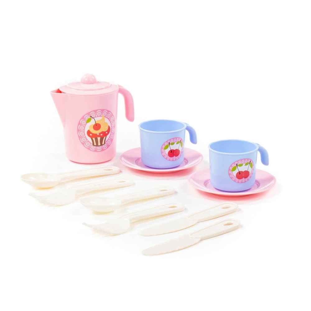 Накрыть красочный стол для любимых кукол и пригласить гостей сможет любая обладательница набора детской посуды "Анюта". В представленном варианте набор выполнен в приятных цветах и украшен тематическими наклейками. С такой игрушкой девочка приобретает навыки юной хозяйки, идентифицирует себя с образом Мамы. В комплект входят: