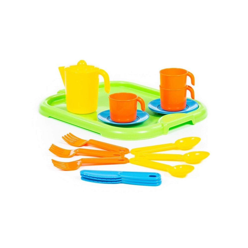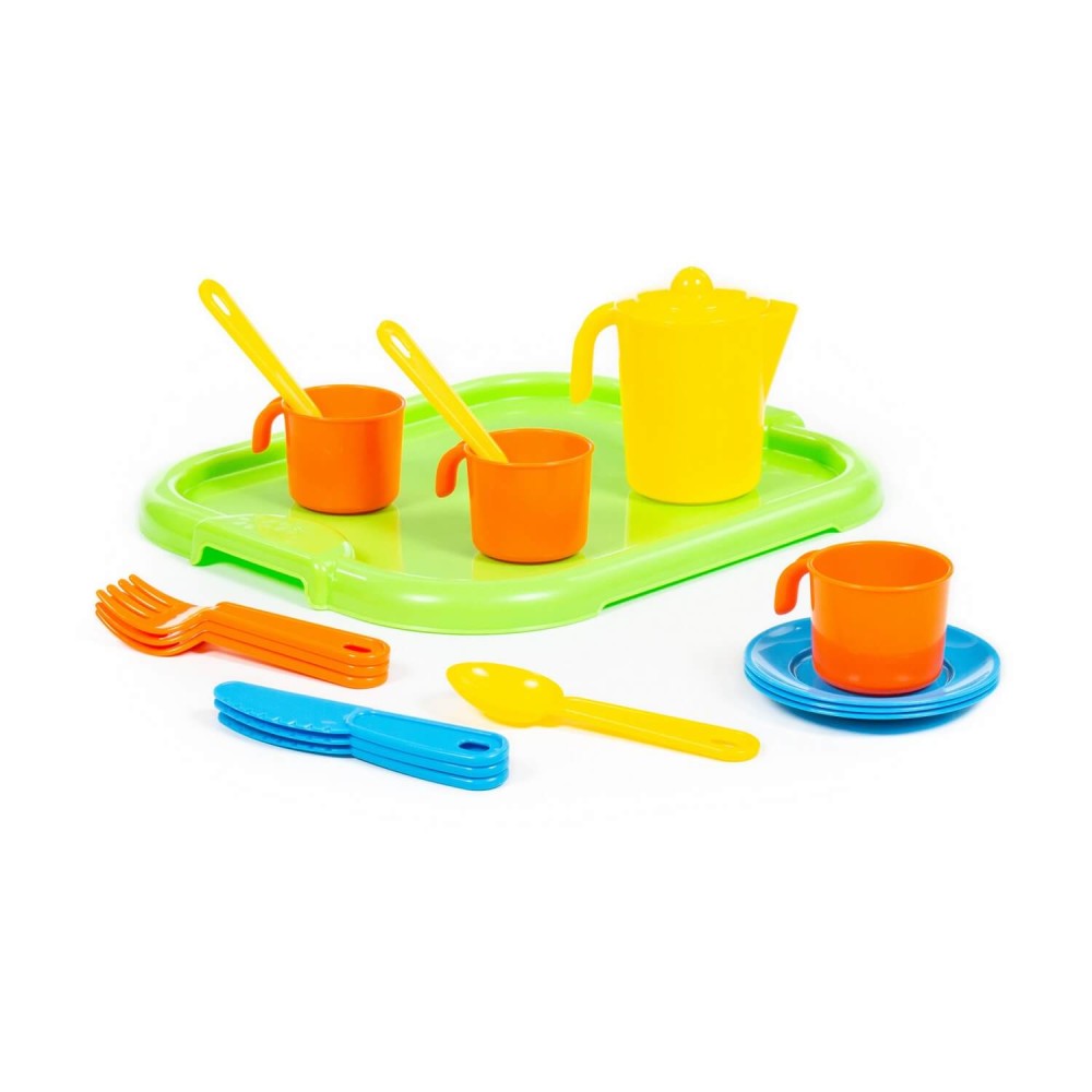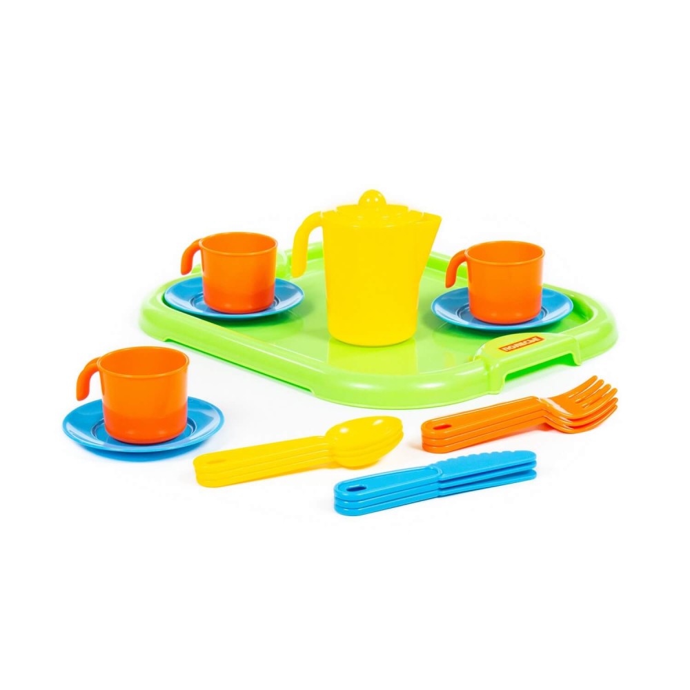 Накрыть красочный стол для любимых кукол и пригласить гостей сможет любая обладательница набора детской посуды "Анюта". С помощью набора девочка приобретает навыки юной хозяйки, идентифицирует себя с образом Мамы. В комплект входят: