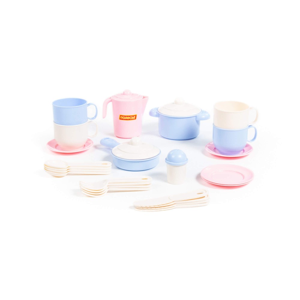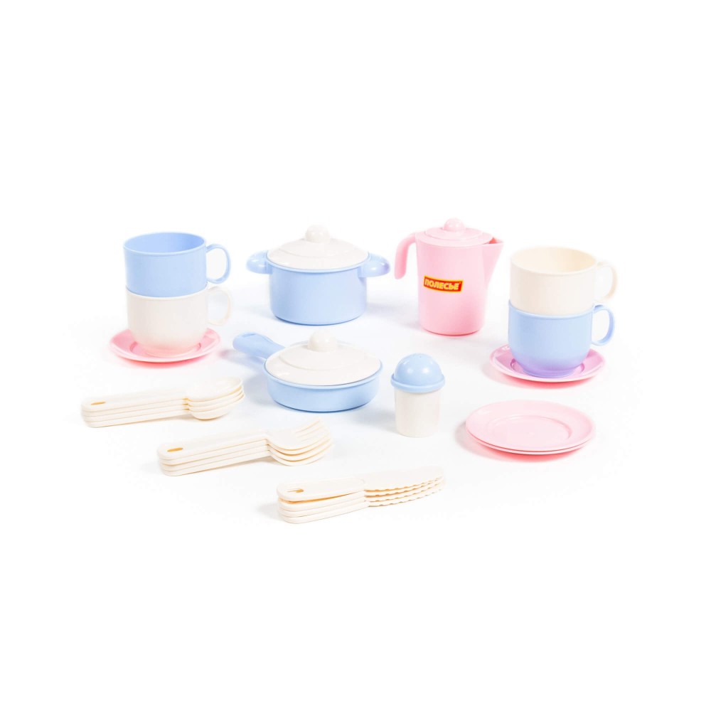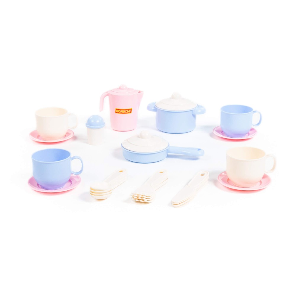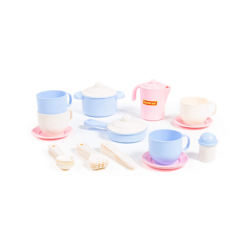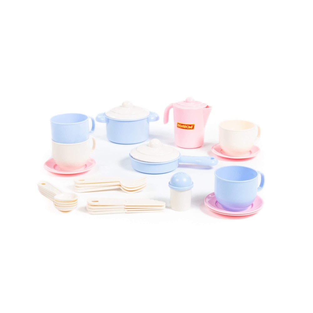 Набор детской посуды "Хозяюшка" на 4 персоны позволит девочке почувствовать себя маленькой хозяйкой: готовить для кукол и угощать гостей. Набор развивает моторику рук, фантазию, мышление, коммуникативные навыки. Ребёнок учится использовать столовые приборы и другие кухонные атрибуты. Играть набором детской посуды можно дома, а также на свежем воздухе в песочнице. Все элементы выполнены из качественного и безопасного пластика в нежной цветовой гамме. Набор упакован в блистер. В набор входят: