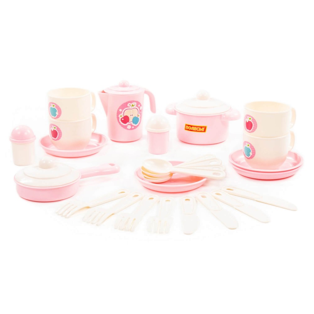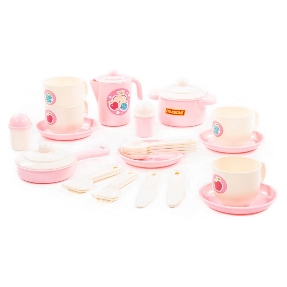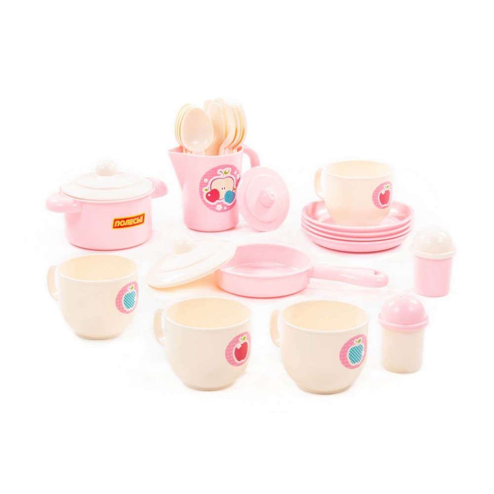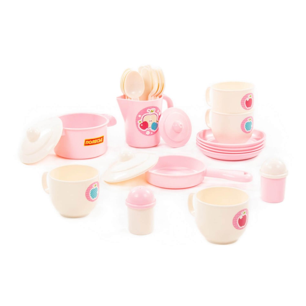 Набор детской посуды "Хозяюшка" на 4 персоны позволит девочке почувствовать себя маленькой хозяйкой: готовить для кукол и угощать гостей. Набор развивает моторику рук, фантазию, мышление, коммуникативные навыки. Ребёнок учится использовать столовые приборы и другие кухонные атрибуты. Играть набором детской посуды можно дома, а также на свежем воздухе в песочнице. Все элементы выполнены из качественного и безопасного пластика в нежной цветовой гамме. Набор упакован в сеточку. В набор входят 28 элементов:
