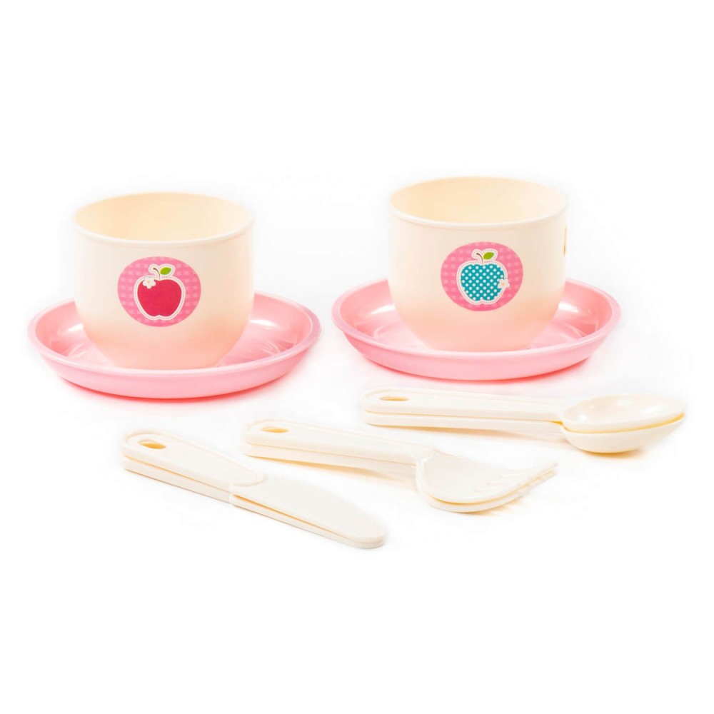 Без детской посуды трудно представить игру детей «в кафе» или «на кухне». Этот вариант набора «Минутка» привлекает внимание нежной цветовой гаммой и наклейками на чашках. В комплект входят блюдца, чашки, ложки, вилки и ножи. Все изделия безопасны и выполнены из высококачественной пластмассы. Такой набор помогает девочке разыгрывать различные сценарии, способствует развитию коммуникативных навыков и фантазии.