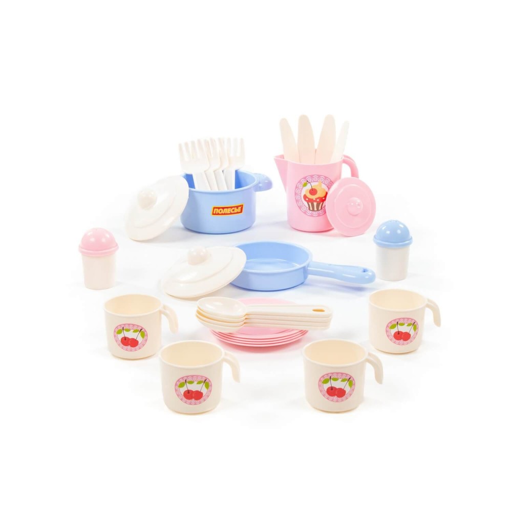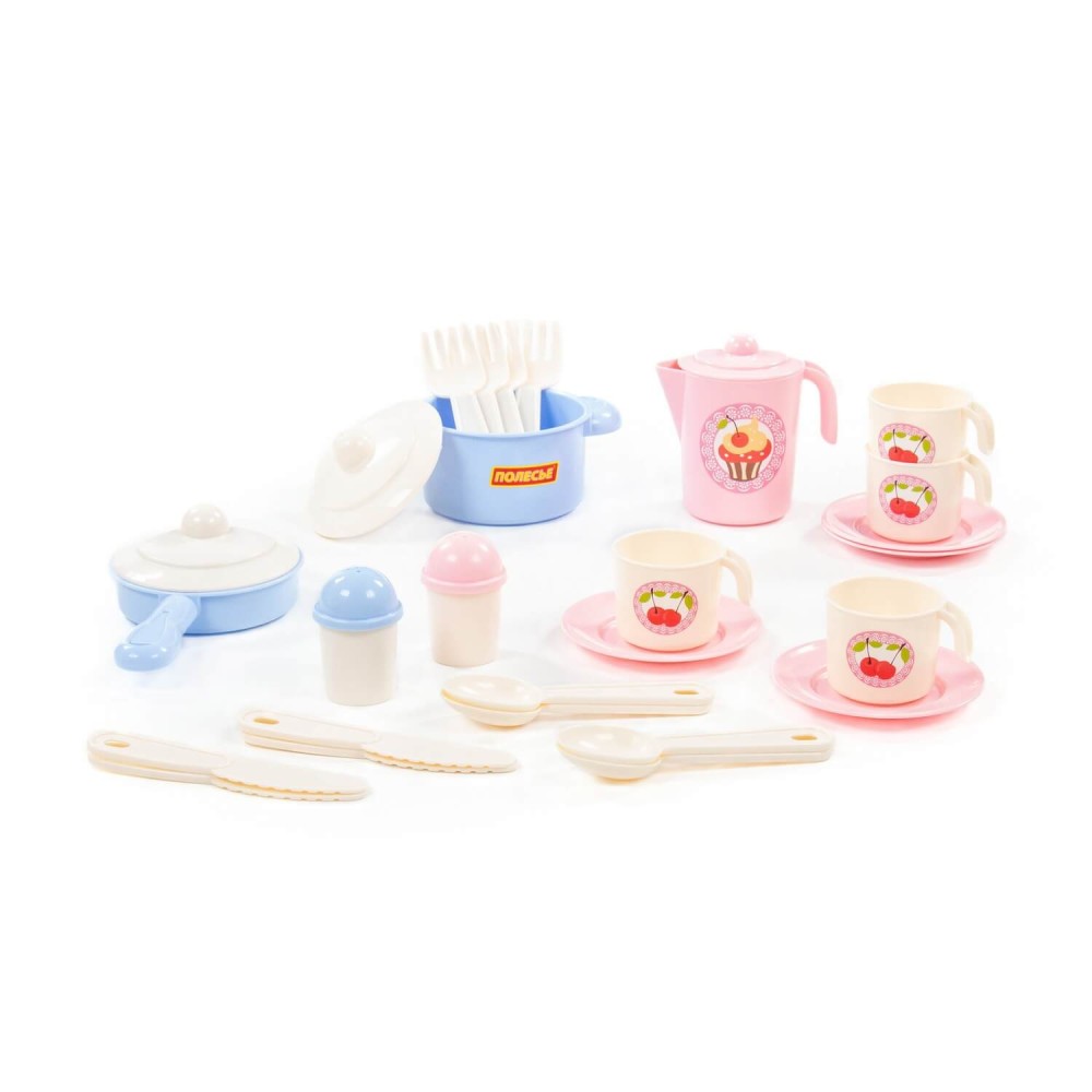 Накрыть красочный стол для любимых кукол сможет любая обладательница набора детской посуды "Настенька". С помощью игры с детской посудой девочка приобретает навыки юной хозяйки, идентифицирует себя с образом Мамы.