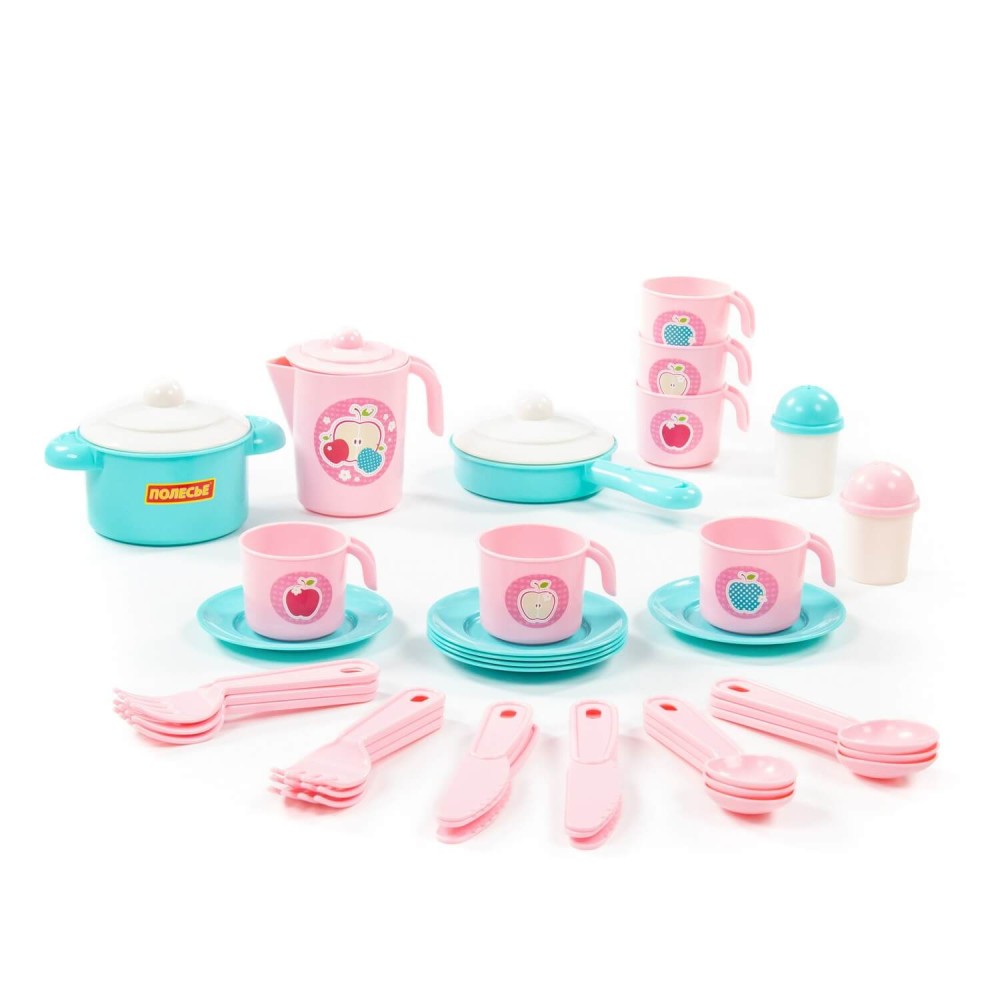 Накрыть красочный стол для любимых кукол сможет любая обладательница набора детской посуды "Настенька". С помощью игры с детской посудой девочка приобретает навыки юной хозяйки, идентифицирует себя с образом Мамы.