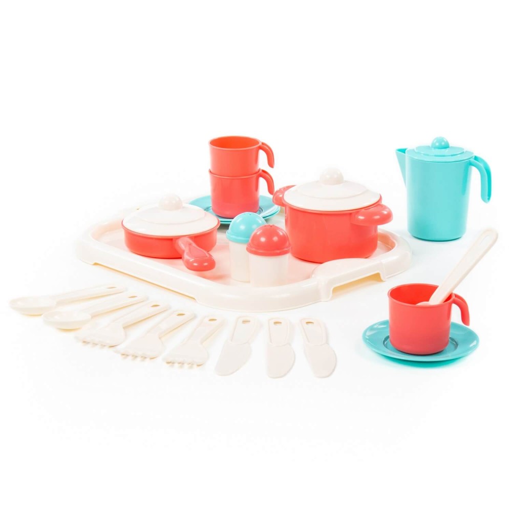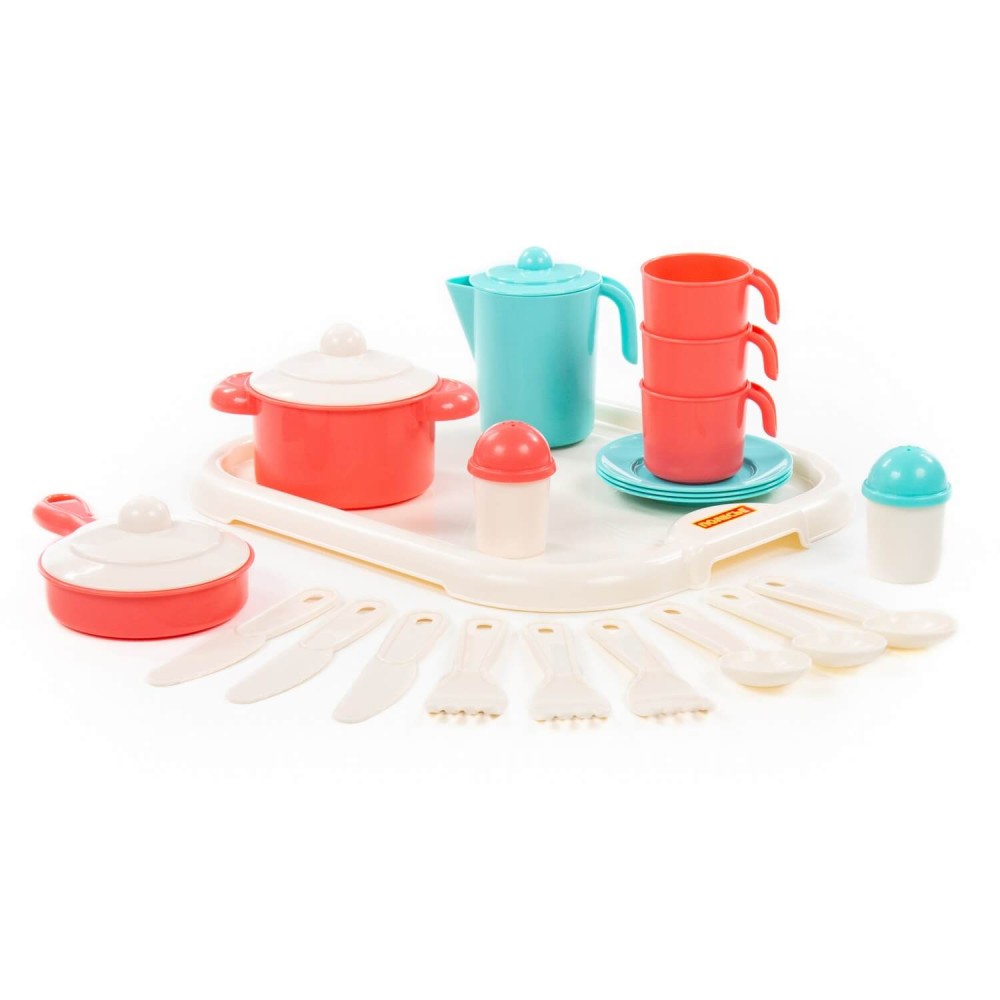 Накрыть красочный стол для любимых кукол сможет любая обладательница набора детской посуды "Настенька". С помощью игры с детской посудой девочка приобретает навыки юной хозяйки, идентифицирует себя с образом Мамы.
