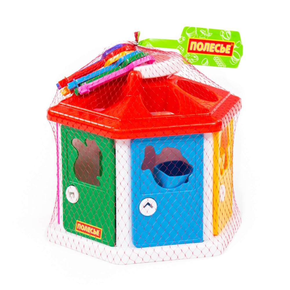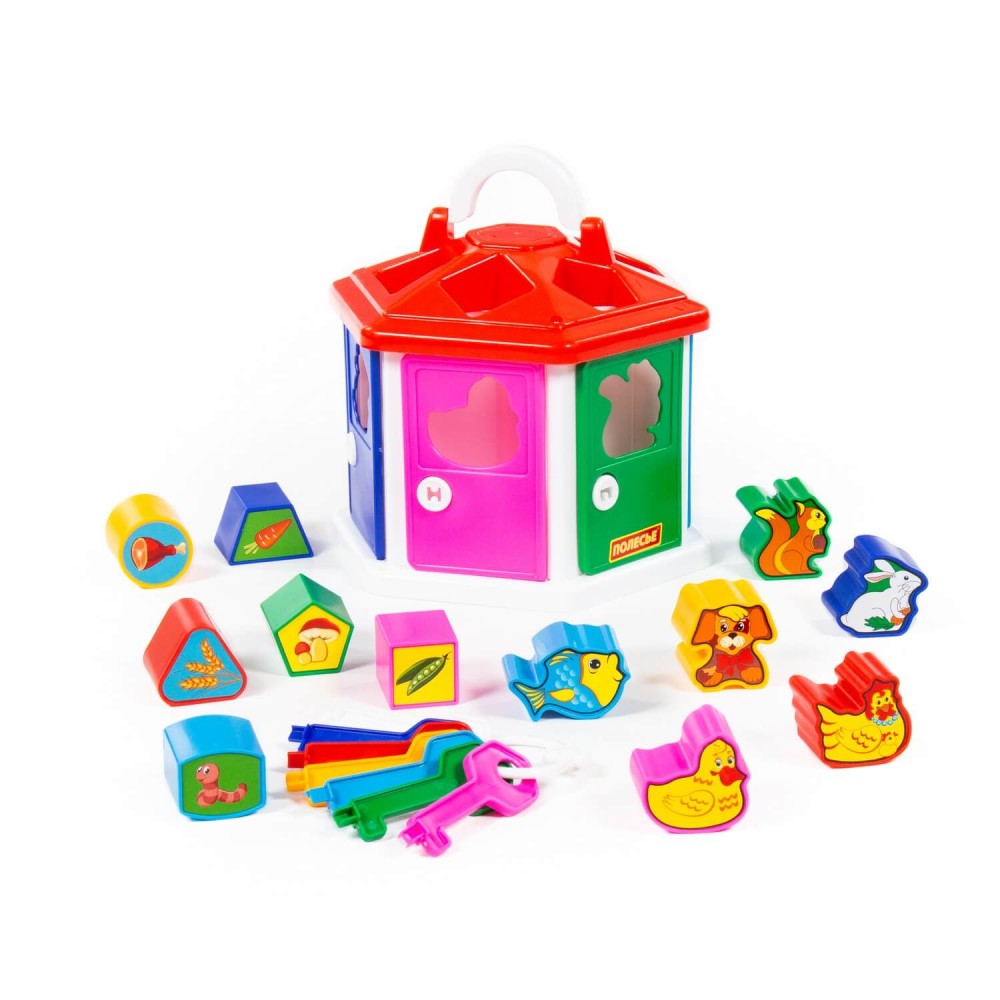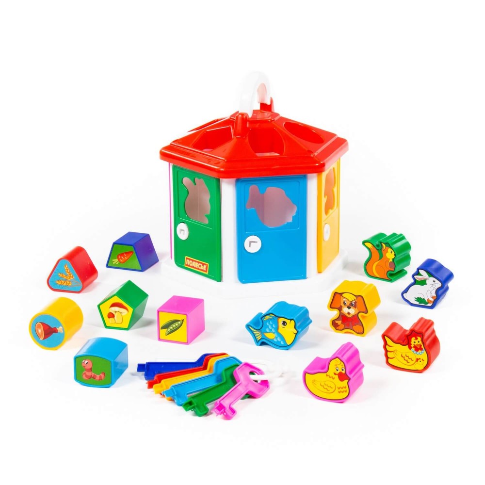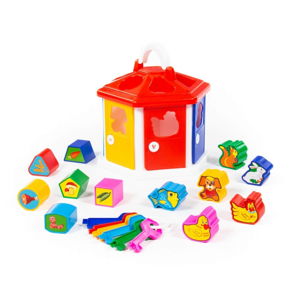 Это самый сложный развивающий домик для детей до 3 лет из серии домиков, потому что содержит 18 логических задач. Ребенку нужно найти и сопоставить 6 фигур, подходящих к отверстиям-пазлам в крыше, 6 зверюшек к отверстиям-пазлам в дверках, 6 разных по цвету ключей к разным по форме замкам. Также ребенок может сам наклеить 6 наклеек зверюшек и 6 картинок на фигуры. Домик оснащен удобной ручкой для его переноски. В игре с "Логическим домиком" ребенок развивает мелкую моторику рук, логику, память, фантазию, учит цвета, формы, названия зверюшек.