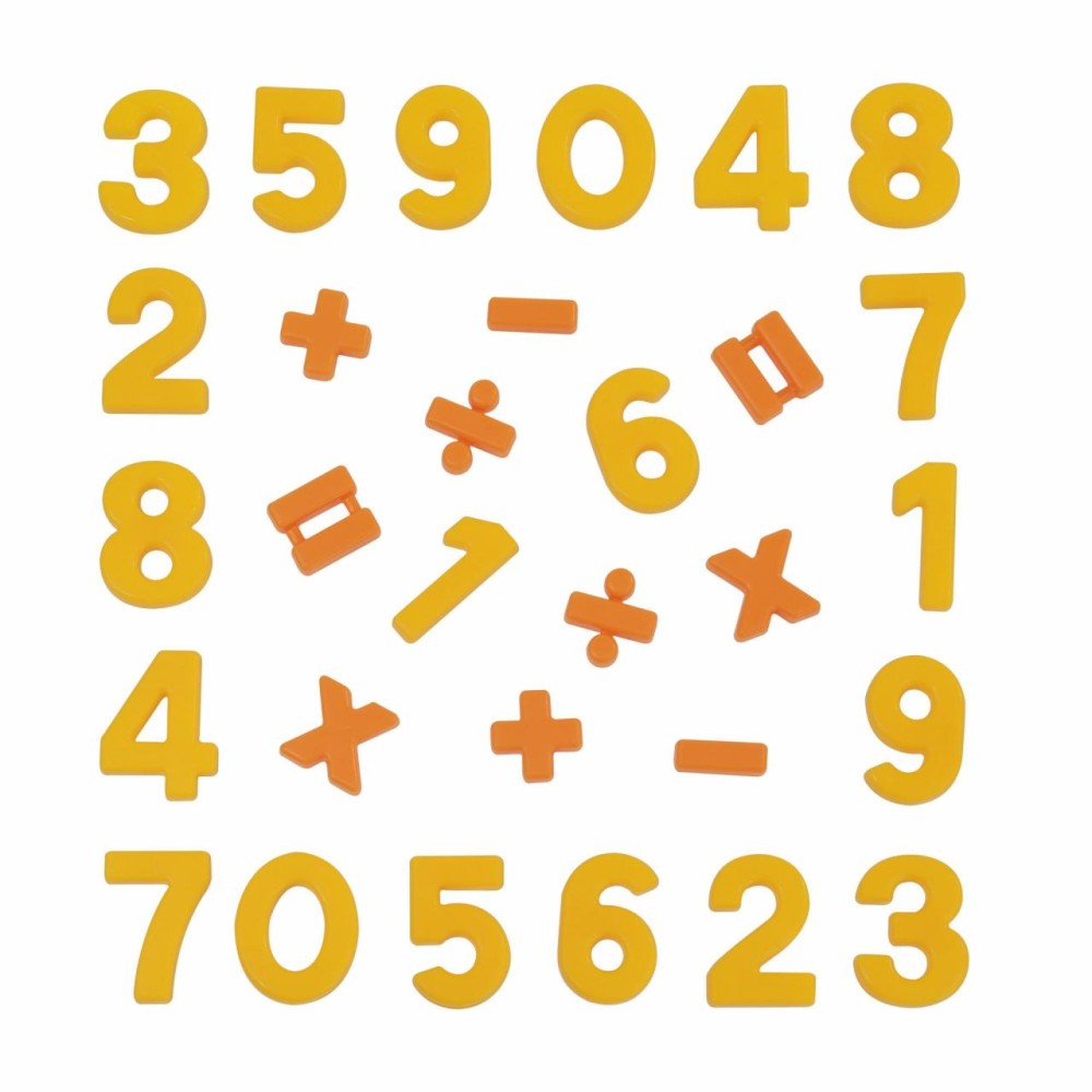 Набор из серии «Первые уроки» - надежный помощник для юных школьников. В комплект входит 20 цифр и 10 математических знаков. Цифры выделены жёлтым цветом, а математические знаки – оранжевым. Набор может использоваться при обучении в старших группах дошкольных учреждений образования, в школах и дома.
