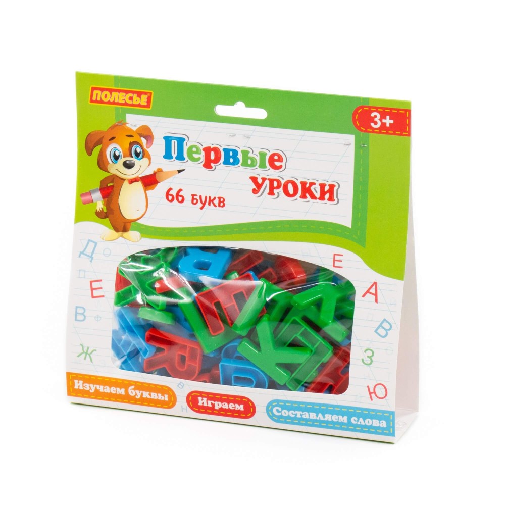 Набор букв «Первые уроки» от фабрики «Полесье» станет надёжным помощником малышам в получении знаний. Для упрощения обучения буквы выделены цветами: гласные – красным, звонкие согласные + твердый и мягкий знак – голубым, а глухие согласные – зелёным. В набор входит 66 букв: гласные – 20 шт., звонкие согласные + твердый и мягкий знак – 26 шт., глухие согласные – 20 шт. На упаковке набора «Первые уроки» предусмотрены задания, которые сделают обучение детей ещё увлекательнее.