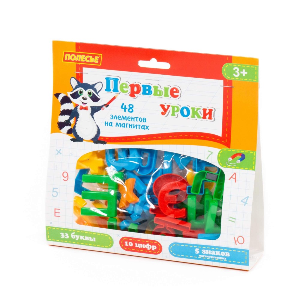 Набор "Первые уроки" на магнитах (33 буквы + 10 цифр + 5 математических знаков) (в пакете)