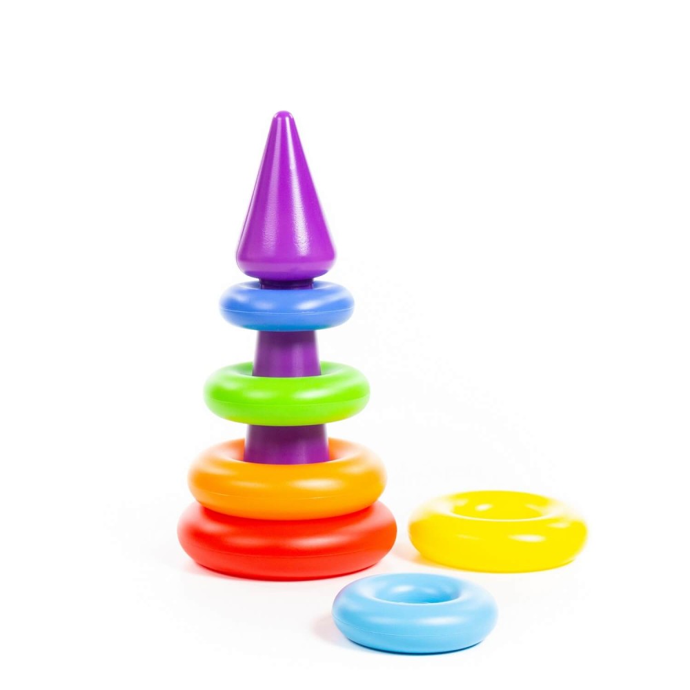 Классическая пирамидка не утратила своей актуальности. Эта логическая игрушка помогает познавать мир малышу, когда он ещё не научился ходить. С её помощью ребёнок понимает, что предметы отличаются размером и цветом. Кольца пирамидки можно считать. Игрушка безопасна и выполнена из качественного пластика. Благодаря классической пирамидке у малыша развиваются логика, память, мелкая моторика рук. Верх пирамидки выполнен в форме конуса.