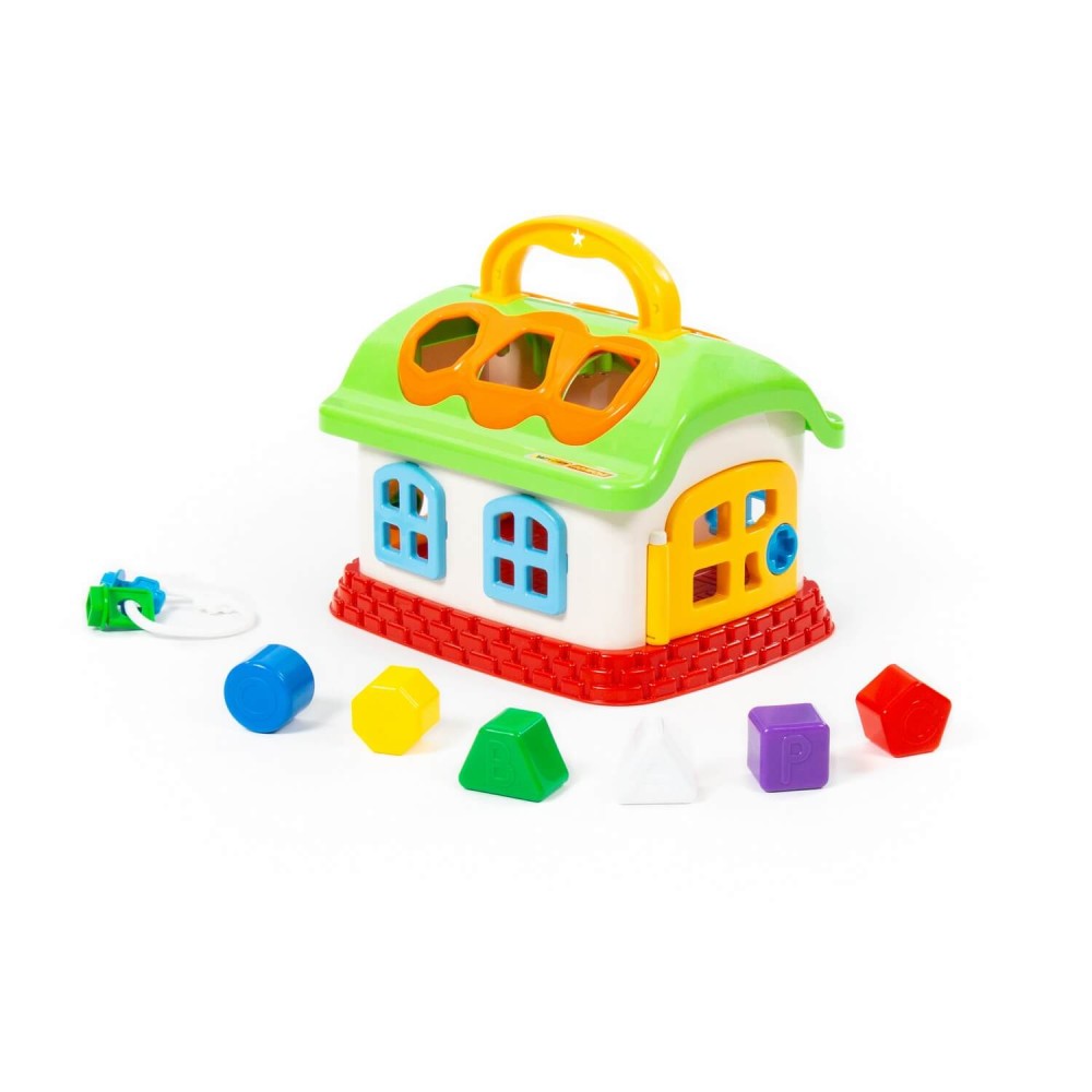 Развивающий сказочный домик от фабрики «Полесье» научит ребёнка различать фигуры, поможет развить моторику рук и внимание. Игрушка имеет яркий дизайн, который способствует знакомству ребёнка с цветом. В крыше домика сделаны отверстия различной формы и размера, которым соответствуют пластмассовые фигурки (треугольник, квадрат, круг и другие). Малышу придётся хорошенько подумать, чтобы поместить фигурку в нужное отверстие. Также у сказочного домика есть две дверки, для каждой нужно подобрать ключик. Такая игра очень полезна для развития логического мышления. Для удобства перемещения игрушки на крыше домика установлена ручка, которая позволит малышу брать любимую игрушку с собой везде!