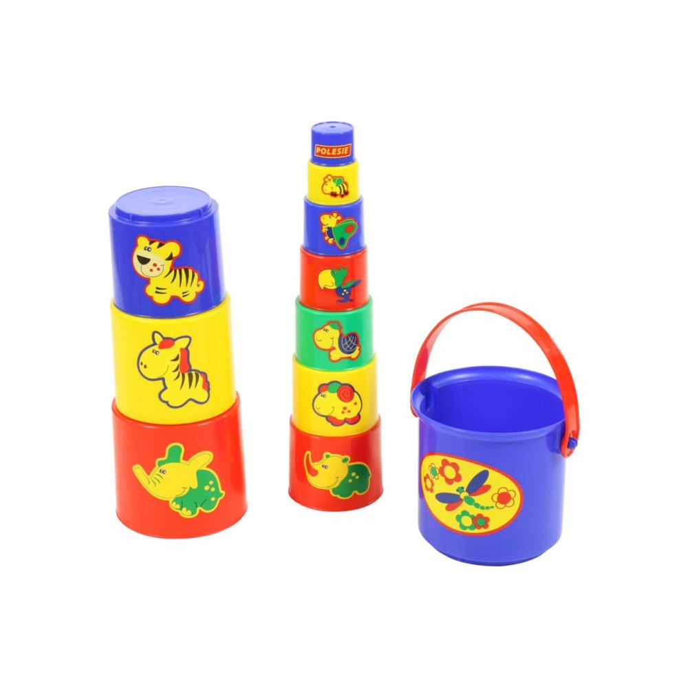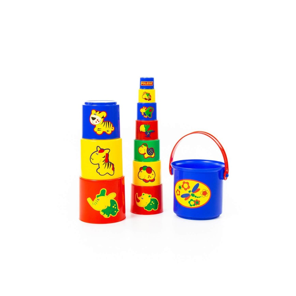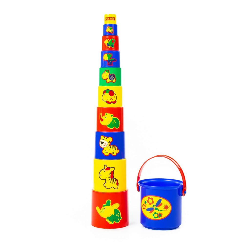 Занимательная пирамидка №3 (11 элементов) от компании «Полесье» - это логическая игрушка для самых маленьких, которую всегда можно взять с собой. Разные по размеру и цвету ведёрки собираются по принципу «матрёшки» и наоборот – можно строить пирамидки. На каждом ведёрке изображены животные, что позволяет познакомить малыша не только с цветом и формой, но и с царством зверей. Игрушку удобно хранить и переносить в большом ведёрке. Занимательной пирамидкой можно играть в песочнице и использовать ведёрки в качестве формочек для создания песочных замков. Игрушка развивает логическое и пространственное мышление, координацию движений, воображение, память и мелкую моторику рук ребёнка.