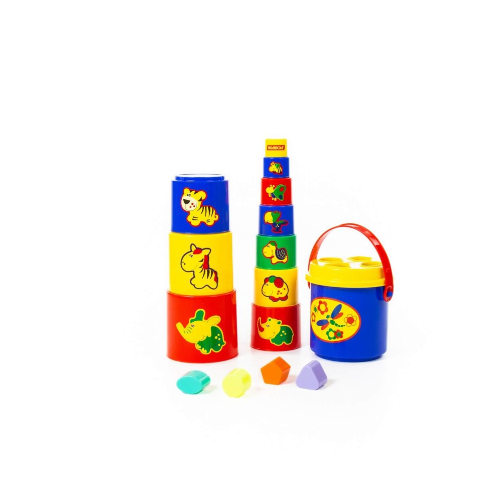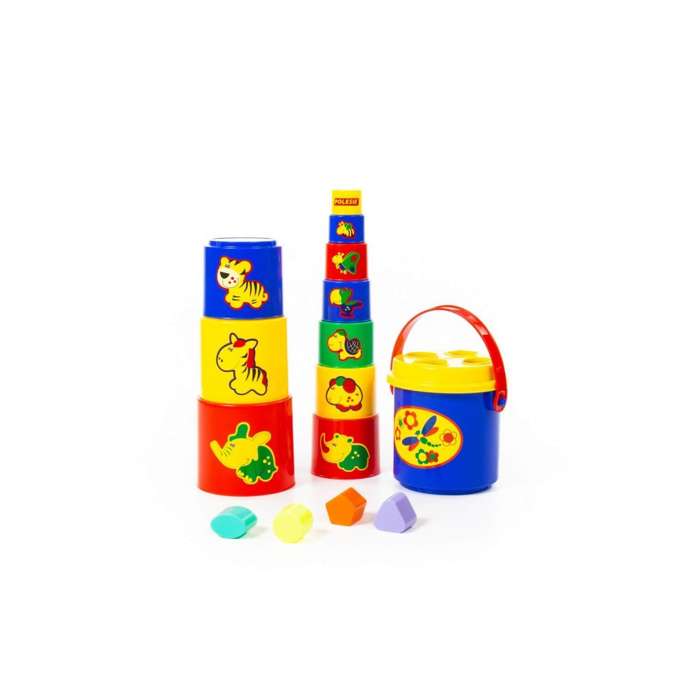 Занимательная пирамидка №3 от компании «Полесье» - это логическая игрушка для малышей, которую всегда можно взять с собой. Разные по размеру и цвету ведёрки собираются по принципу «матрёшки" и наоборот – можно строить пирамидки. На каждом ведёрке изображены животные, что позволяет познакомить малыша не только с цветом и формой, но и с царством зверей. В набор входит большое ведёрко с крышечкой, на которой четыре отверстия-пазла. Для каждого отверстия нужно подобрать фигурки разных форм. Играть занимательной пирамидкой удобно как дома, так и на свежем воздухе. Её можно брать в песочницу и использовать ведёрки в качестве формочек для создания песочных замков. Игрушка развивает логическое и пространственное мышление, координацию движений, воображение, память и мелкую моторику рук ребёнка.