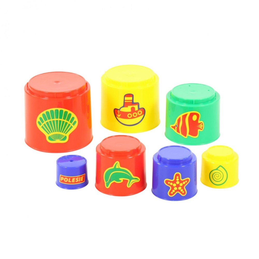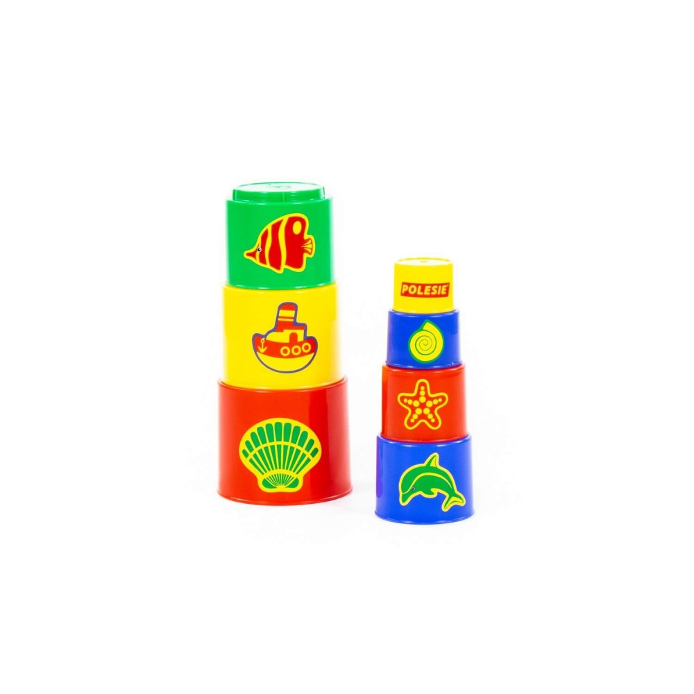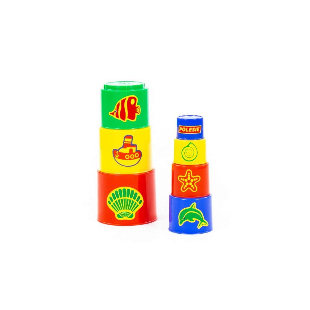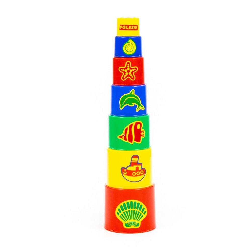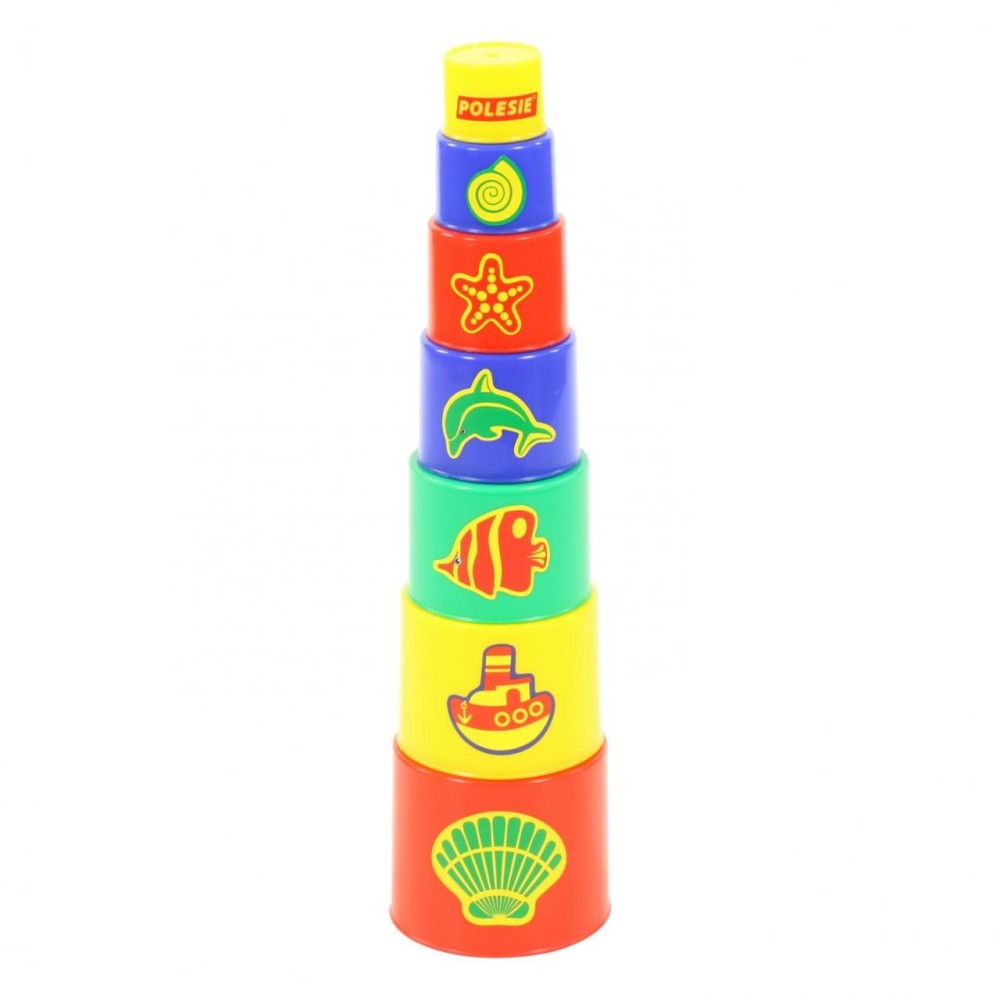 Занимательная пирамидка №3 (7 элементов) от компании «Полесье» - это логическая игрушка для самых маленьких детей, которую всегда можно взять с собой. Разные по размеру и цвету ведёрки собираются по принципу «матрёшки» и наоборот – можно строить пирамидки. На каждом ведёрке изображены обитатели моря, что позволяет знакомить малыша не только с цветом и формой, но и с подводным царством. Играть занимательной пирамидкой удобно как дома, так и на свежем воздухе. Её можно брать в песочницу и использовать ведёрки в качестве формочек для создания песочных замков. Игрушка развивает логическое и пространственное мышление, координацию движений, воображение, память и мелкую моторику рук ребёнка.