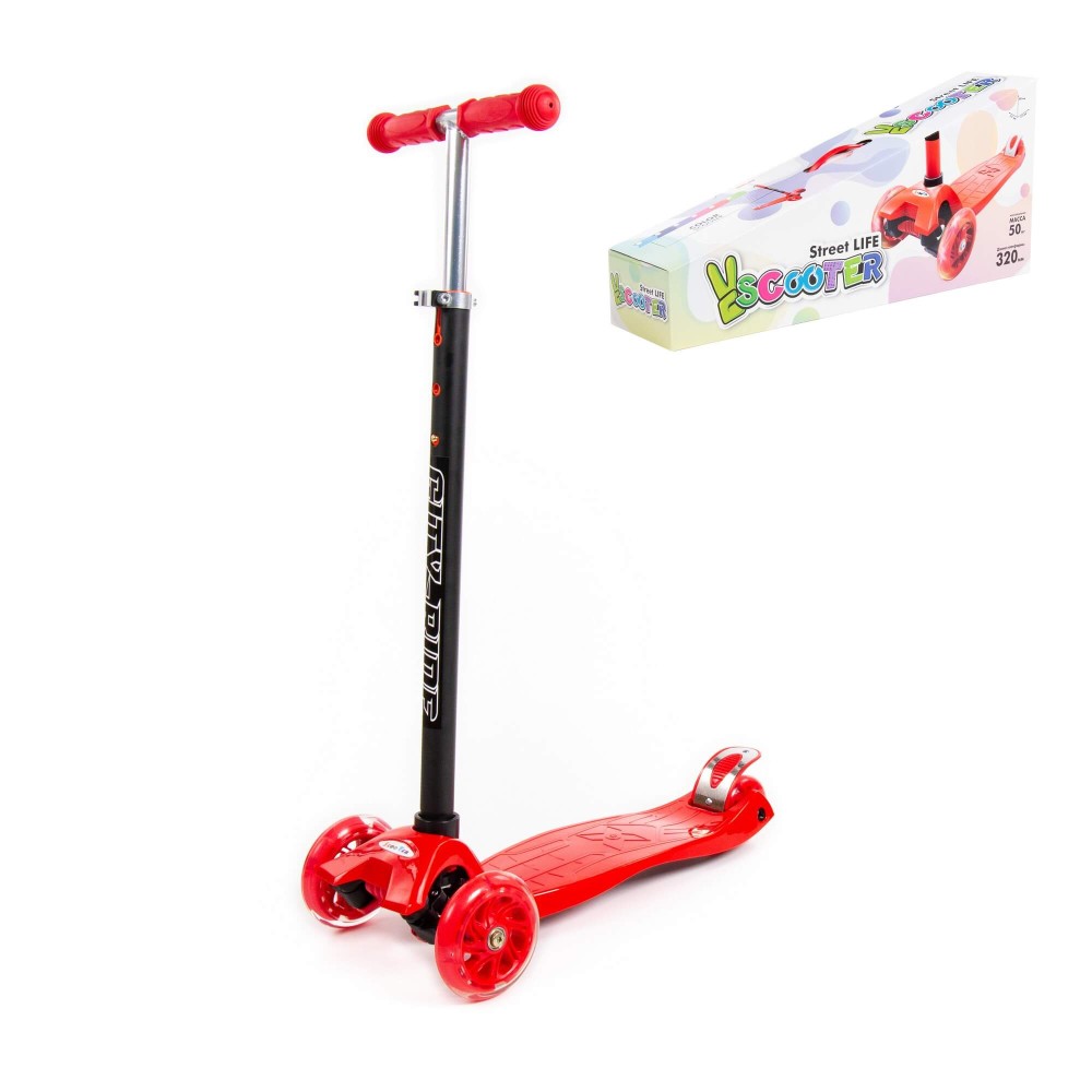 # 0072 Детский самокат (красно-чёрный) (в коробке)