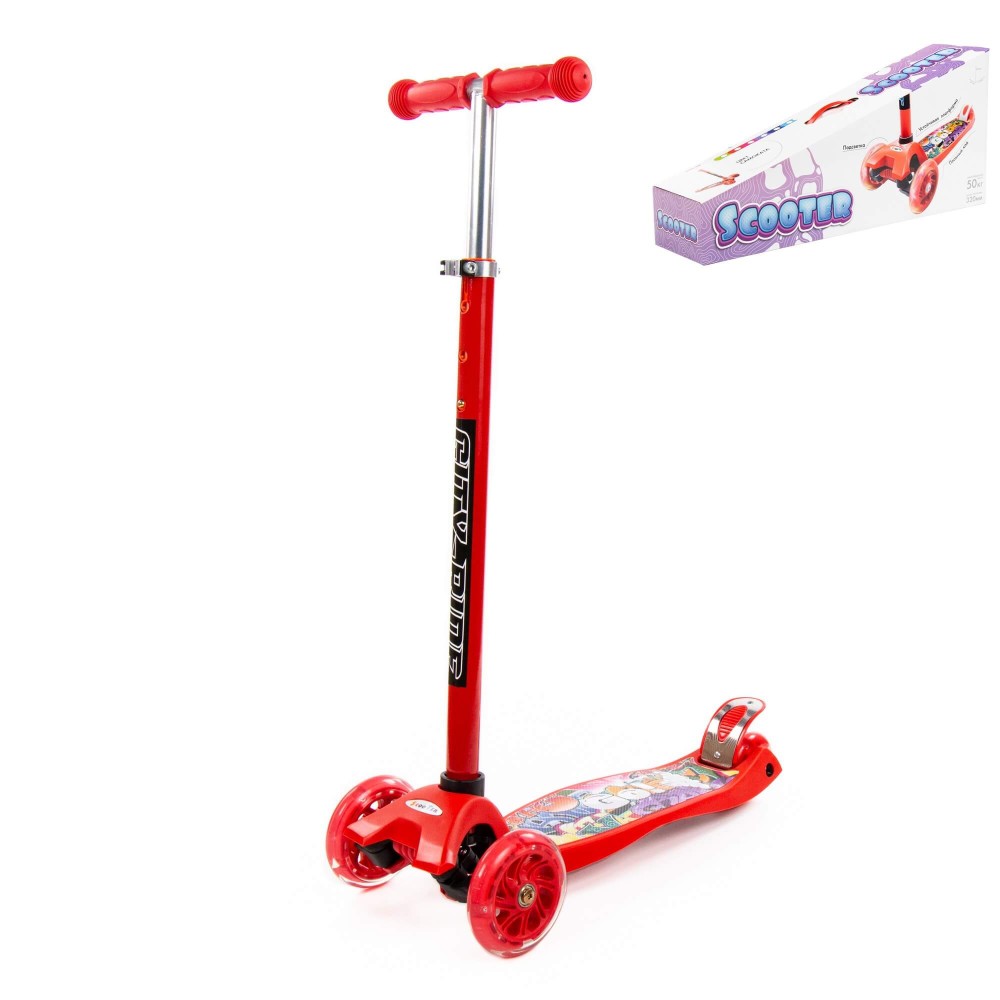 #0072 Детский самокат (с наклейкой V1) (красный) (в коробке)