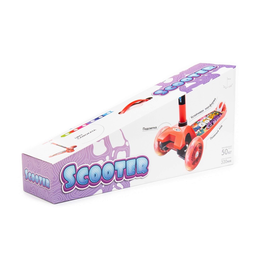 Самокат от фабрики "Полесье" станет замечательным средством передвижения для любого малыша. Самокат предназначен для деток от 3-х лет. Выдерживает вес в 50 кг. Размеры в собранном виде - 570х257х790 мм. Самокат имеет подсветку колёс, оснащён ножным тормозом. Руль можно регулировать, это обеспечит малышу максимально комфортное катание. Изготовлен самокат из высококачественных материалов, имеет яркую расцветку, а также красочную наклейку на платформе. Представлен в разных цветах: голубом, синем, фиолетовом, малиновом, красном, красно-чёрном и зелёном. Прогулки с таким самокатом станут гораздо веселее!