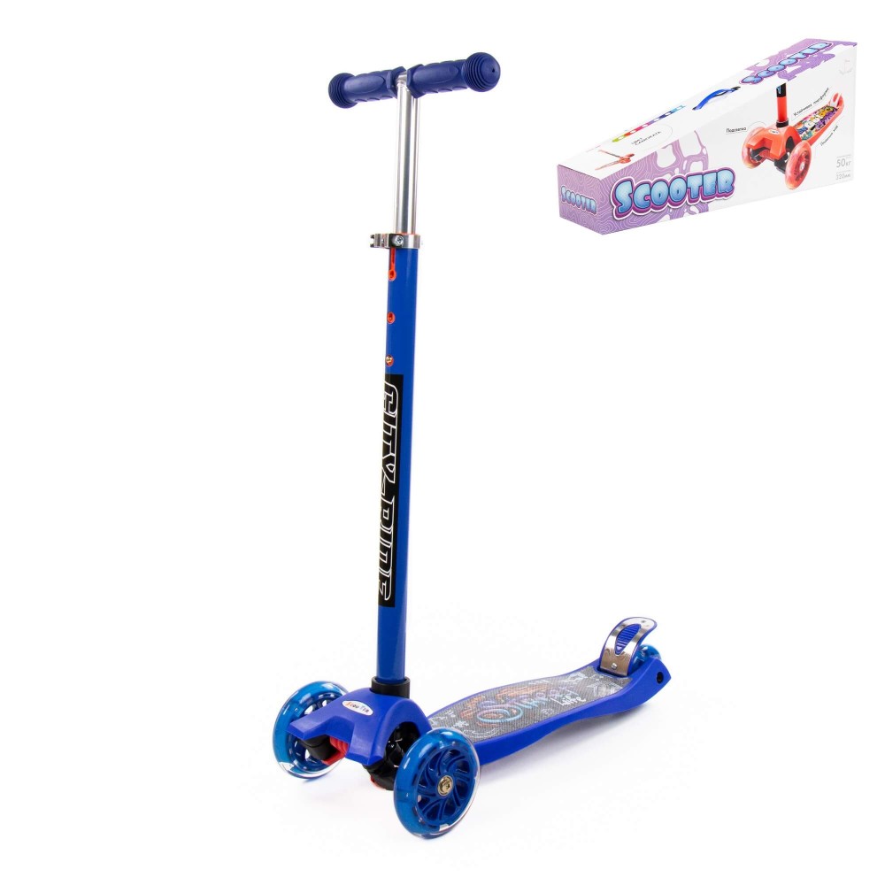 #0072 Детский самокат (с наклейкой V1) (синий) (в коробке)