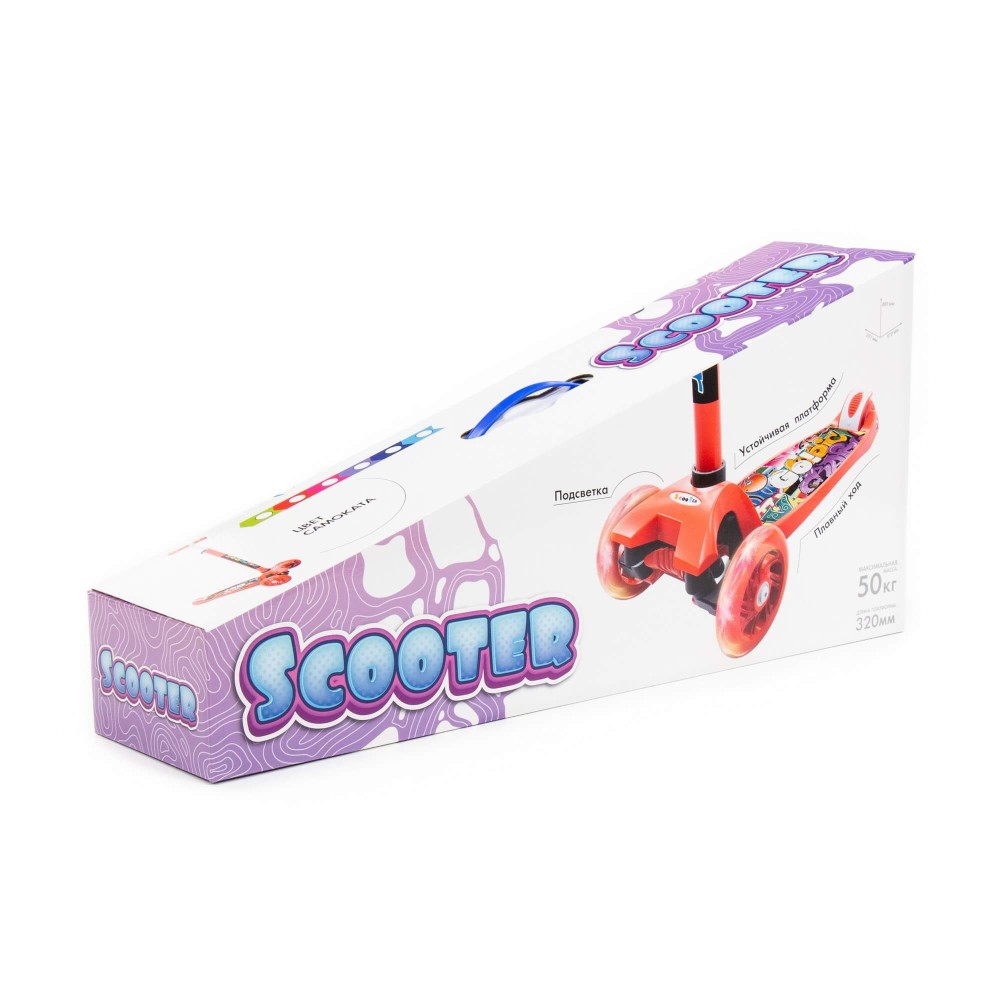 Самокат от фабрики "Полесье" станет замечательным средством передвижения для любого малыша. Самокат предназначен для деток от 3-х лет. Выдерживает вес в 50 кг. Размеры в собранном виде - 570х257х790 мм. Самокат имеет подсветку колёс, оснащён ножным тормозом. Руль можно регулировать, это обеспечит малышу максимально комфортное катание. Изготовлен самокат из высококачественных материалов, имеет яркую расцветку, а также красочную наклейку на платформе. Представлен в разных цветах: голубом, синем, фиолетовом, малиновом, красном, красно-чёрном и зелёном. Прогулки с таким самокатом станут гораздо веселее!