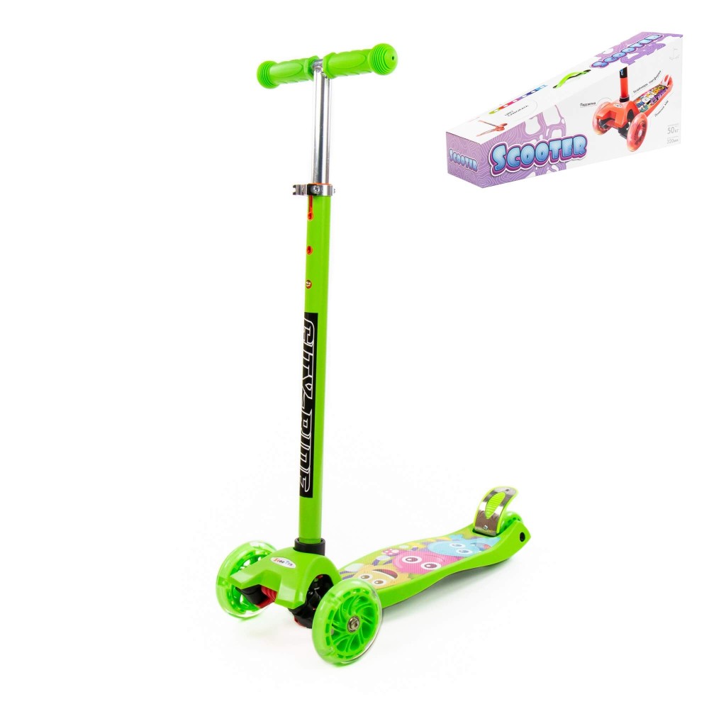 #0072 Детский самокат (с наклейкой V1) (зелёный) (в коробке)