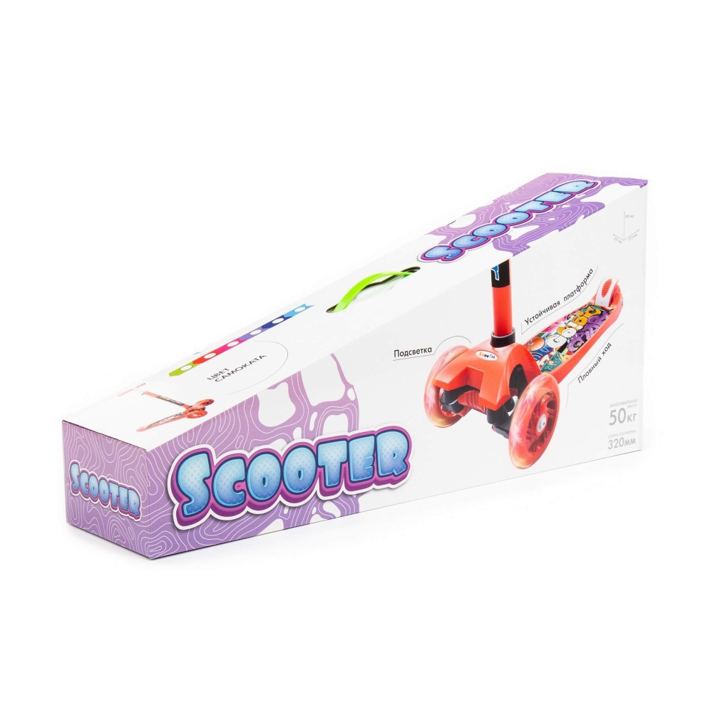 Самокат от фабрики "Полесье" станет замечательным средством передвижения для любого малыша. Самокат предназначен для деток от 3-х лет. Выдерживает вес в 50 кг. Размеры в собранном виде - 570х257х790 мм. Самокат имеет подсветку колёс, оснащён ножным тормозом. Руль можно регулировать, это обеспечит малышу максимально комфортное катание. Изготовлен самокат из высококачественных материалов, имеет яркую расцветку, а также красочную наклейку на платформе. Представлен в разных цветах: голубом, синем, фиолетовом, малиновом, красном, красно-чёрном и зелёном. Прогулки с таким самокатом станут гораздо веселее!